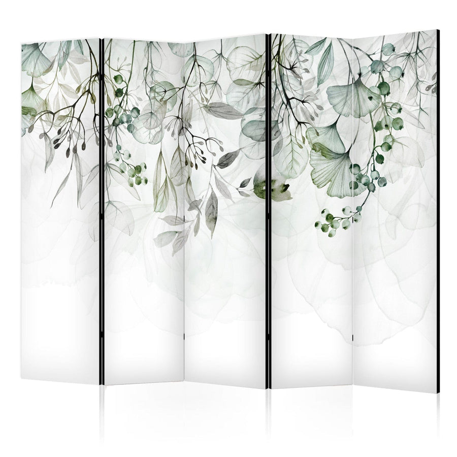 Aizslietnis un telpas sadalītājs- Zaļās lapas un ziedi uz gaiša fona ART