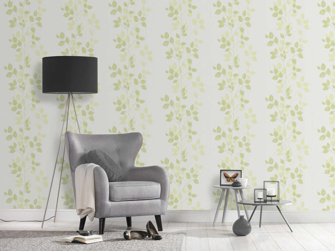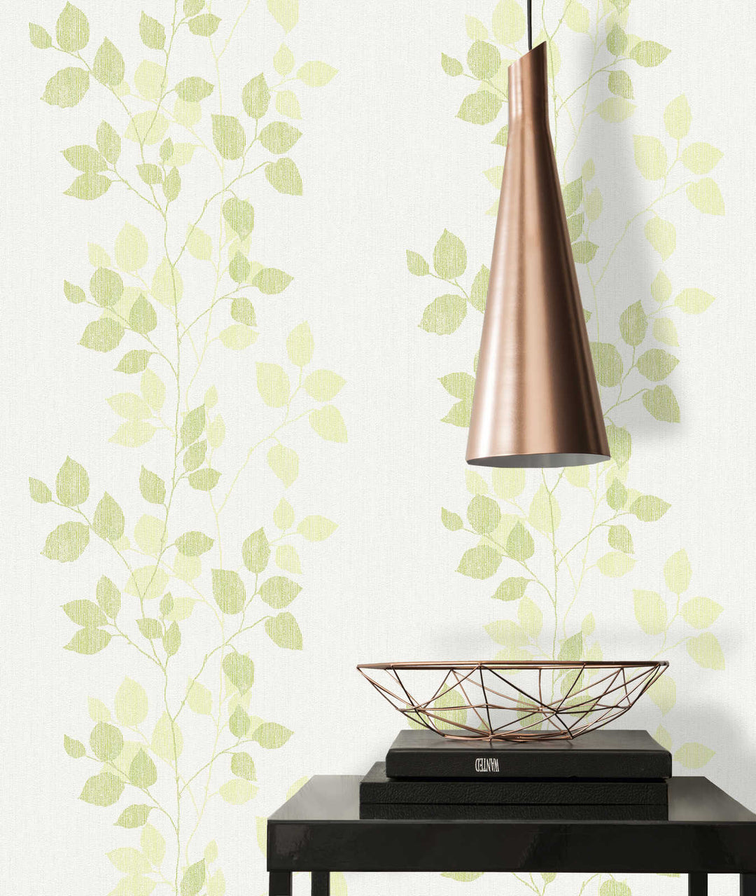 Tapetes ar lapu rakstu pavasara krāsās - zaļā, baltā, 1246735