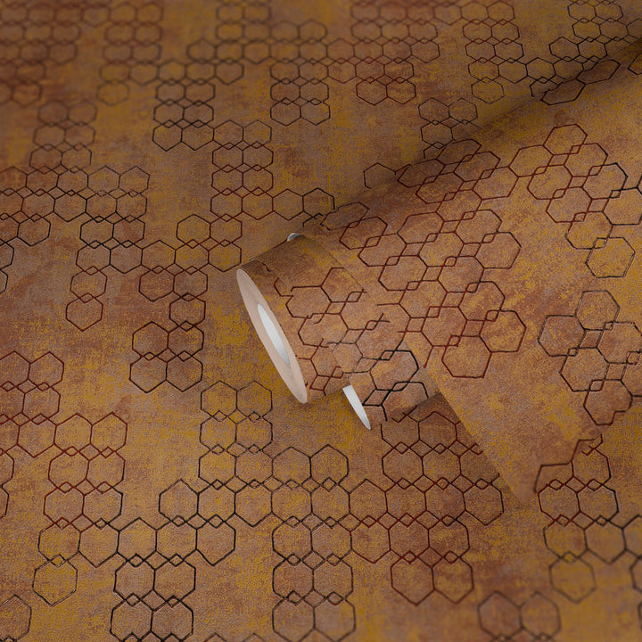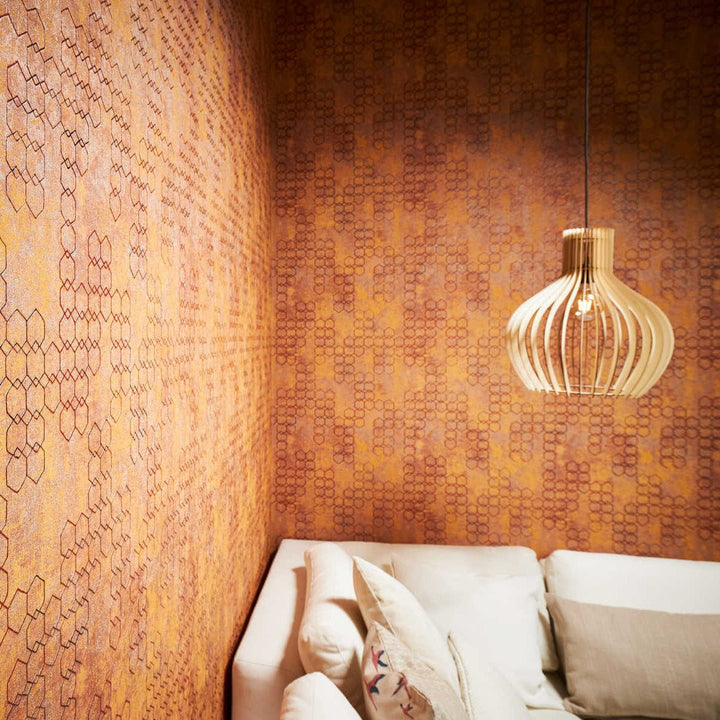 Tapetes ar ģeometrisku rakstu industriālā stilā - vara krāsā, 1332743