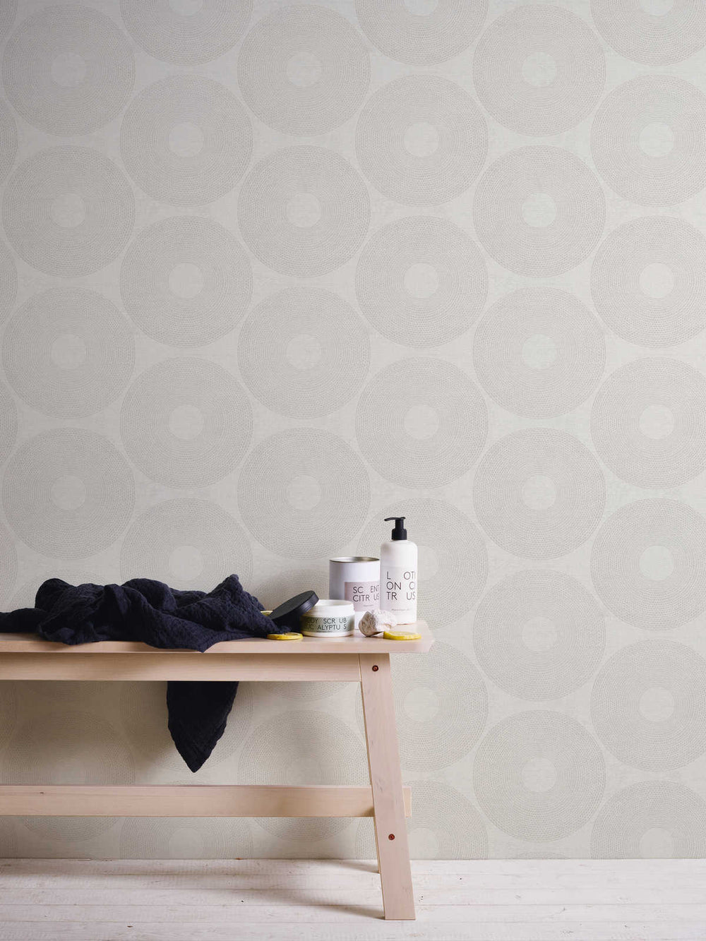 Grafiskas tapetes ar 3D rakstu krēmkrāsā, 1363540