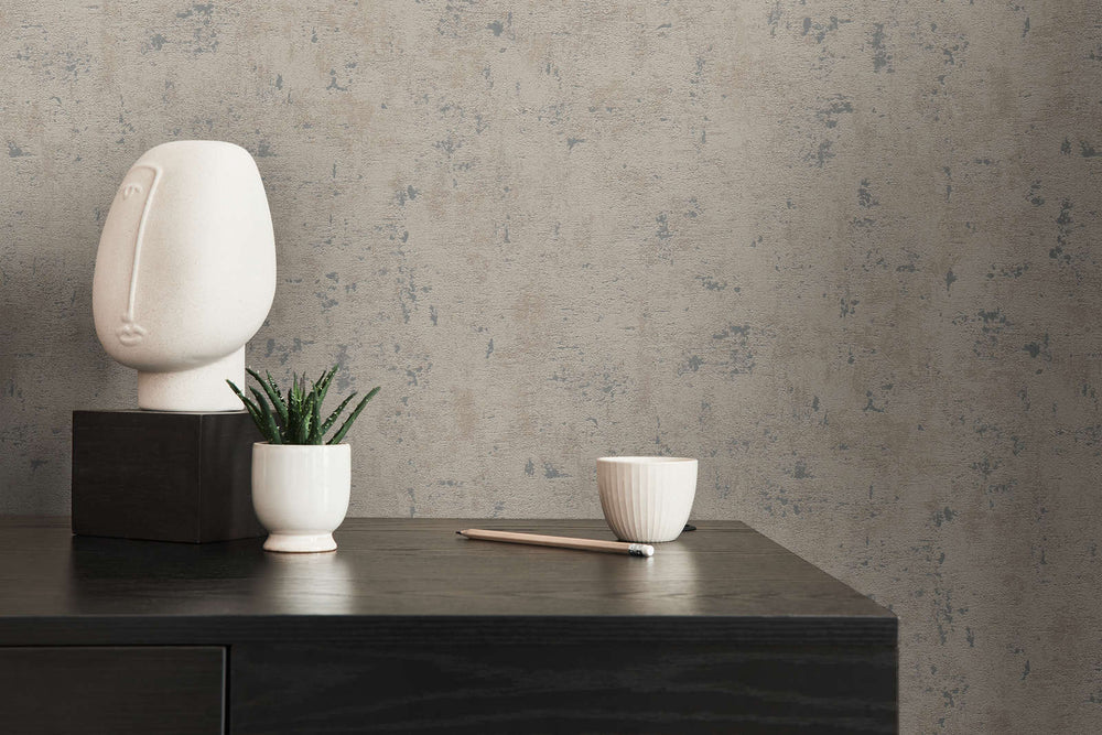 Tapetes ar metāliskiem akcentiem siltos pelēkos toņos, 1406642