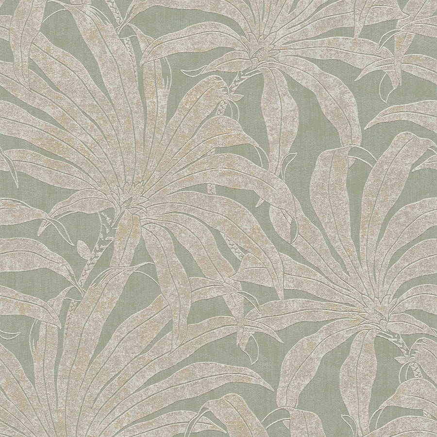 Tapetes ar džungļu ziedu dizainu, zaļā, zelta, sudrabā, 395012 AS Creation