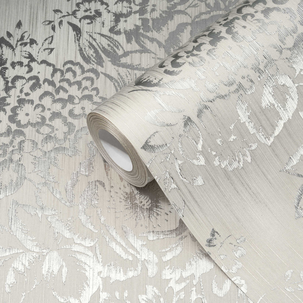 Grafiskas tapetes ar 3D rakstu krēmkrāsā, sudraba,  1363540 AS Creation