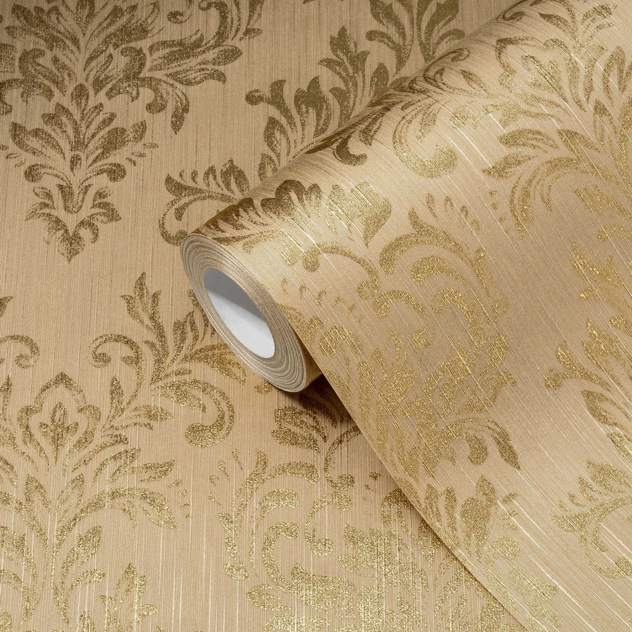 Klasiskās baroka tapetes ar ornamentu bēšā un brūnā krāsā, 1374027