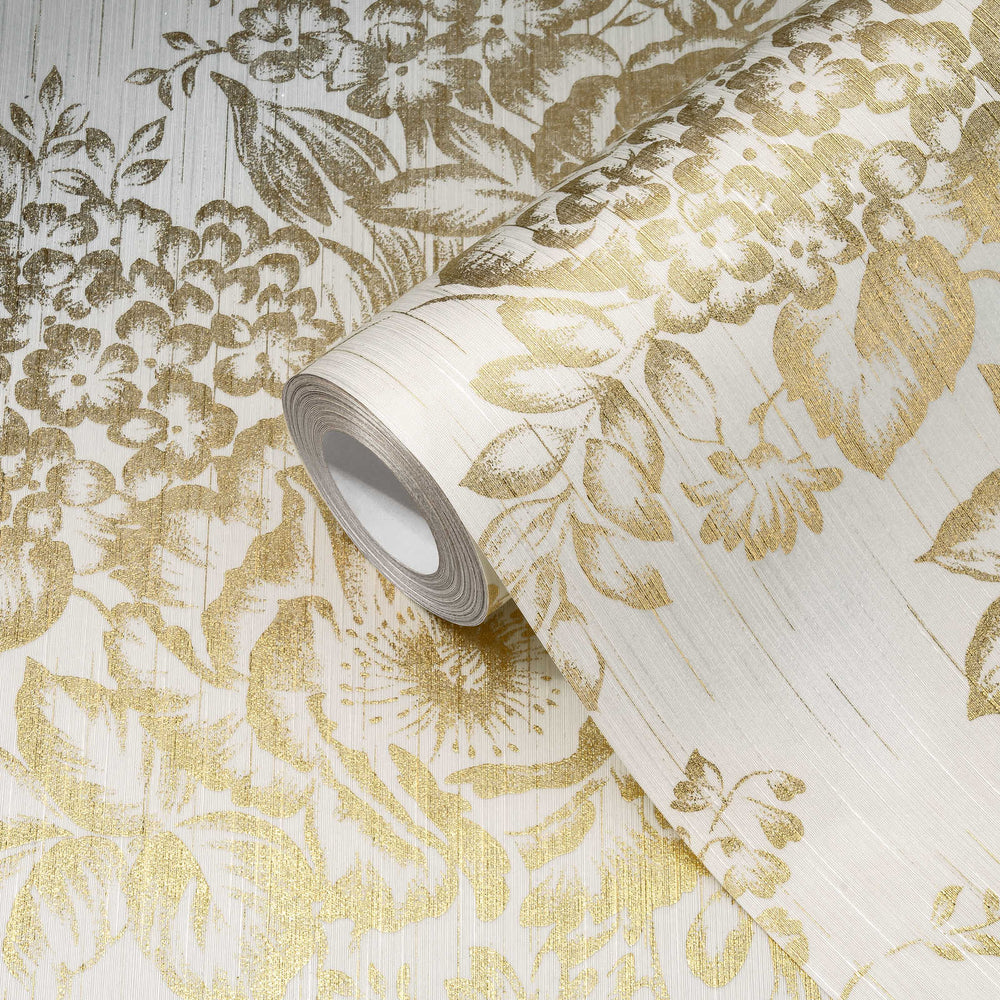 Ziedu ornamenta tapetes ar metālisku efektu - pelēka, sudraba, balta AS Creation
