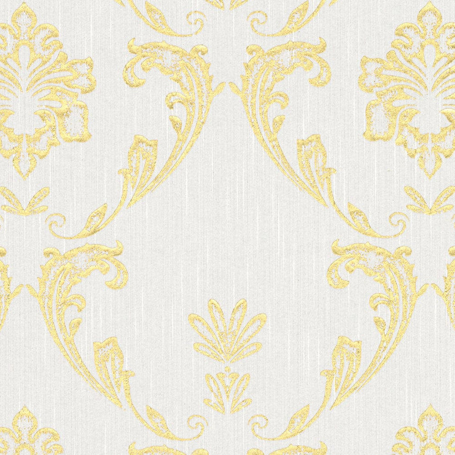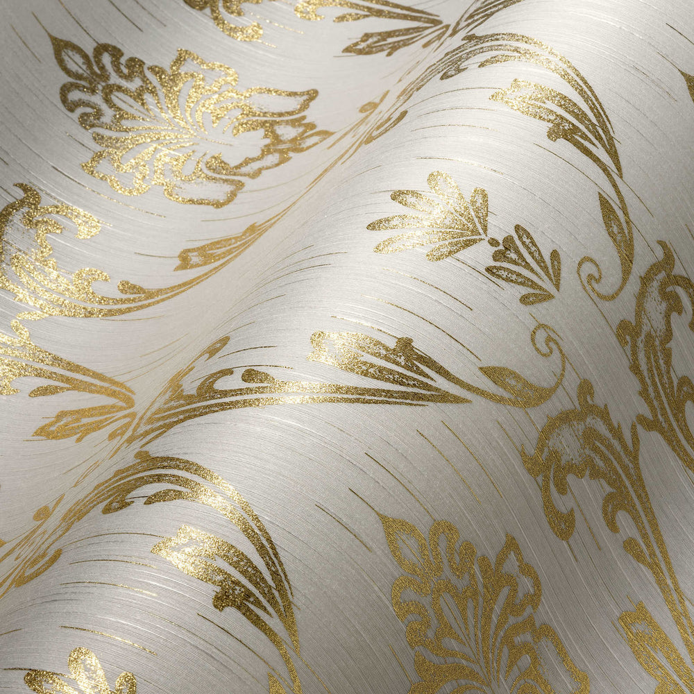 Flizelīna tapetes baroka stilā baltā/pelēkā krāsā ar mirdzuma efektu – Klasisks interjera risinājums | 1410527 AS Creation