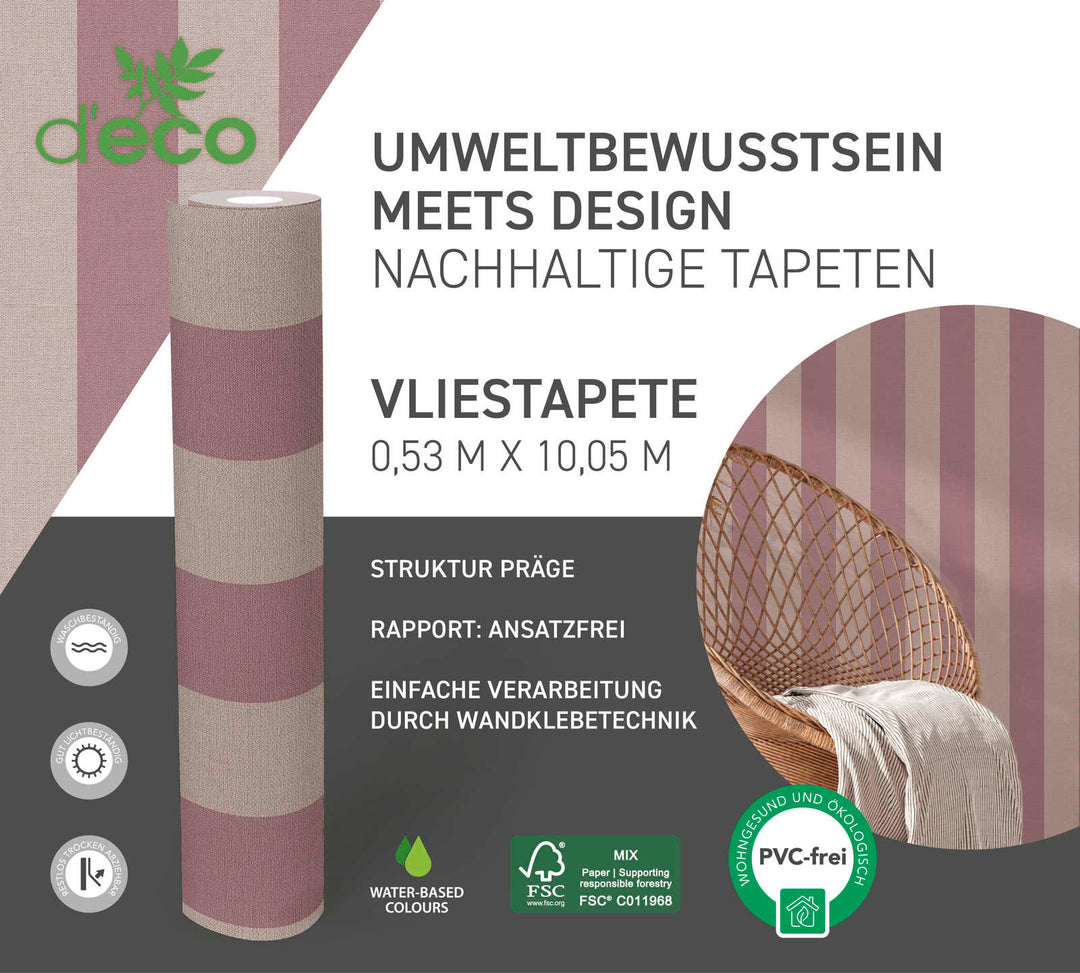 Ekoloģiskas svītrainas tapetes, bez PVC: violetas- 1363136, 🔖