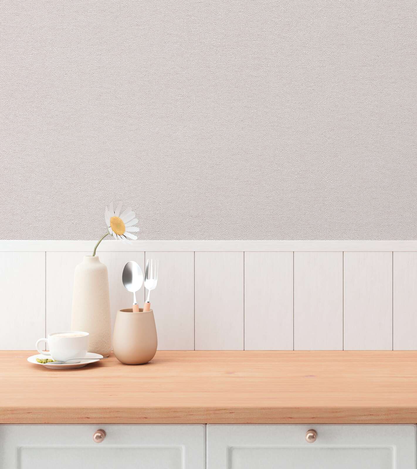 Smalks, delikāts tapetu raksts ar vienmērīgu, tekstilam līdzīgu faktūru. Virsma atgādina viegli austu audumu, kas tai piešķir maigu, patīkamu sajūtu un rada smalku mirdzumu. Krāsu gamma sastāv no gaiša, delikāta pelēka toņa, kas rada ļoti neitrālu efektu un harmoniski iekļaujas dažādos interjera dizaina stilos. Kopumā dizains rada mierīgu, elegantu un modernu atmosfēru, ir ideāls kā atturīgs fons un padara telpu draudzīgu, atvērtu un mūžīgu.