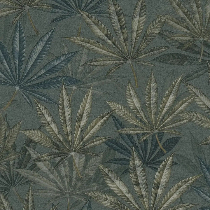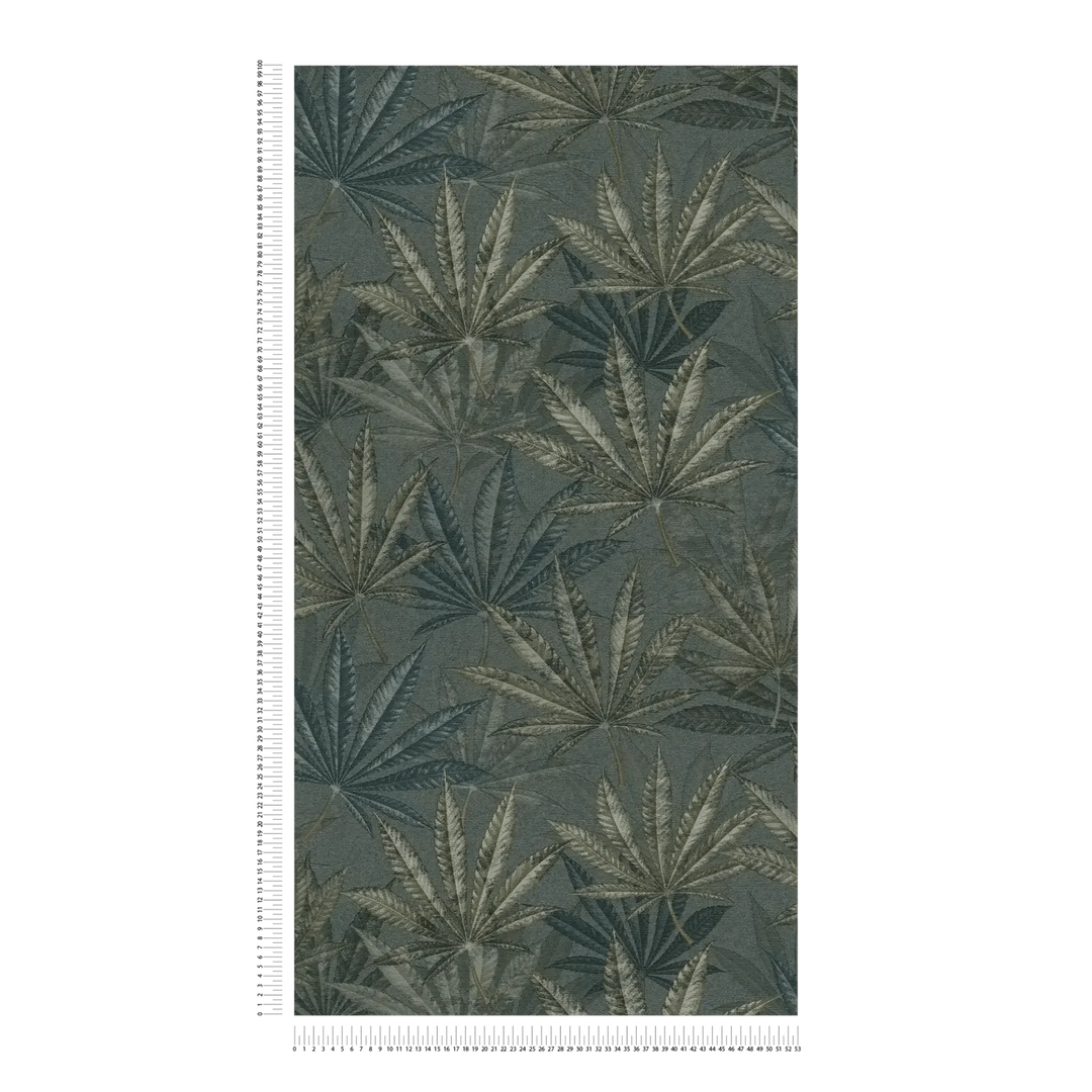 Flizelīna tapetes ar lapu rakstu džungļu stilā - tumši zaļā krāsā - 1414744