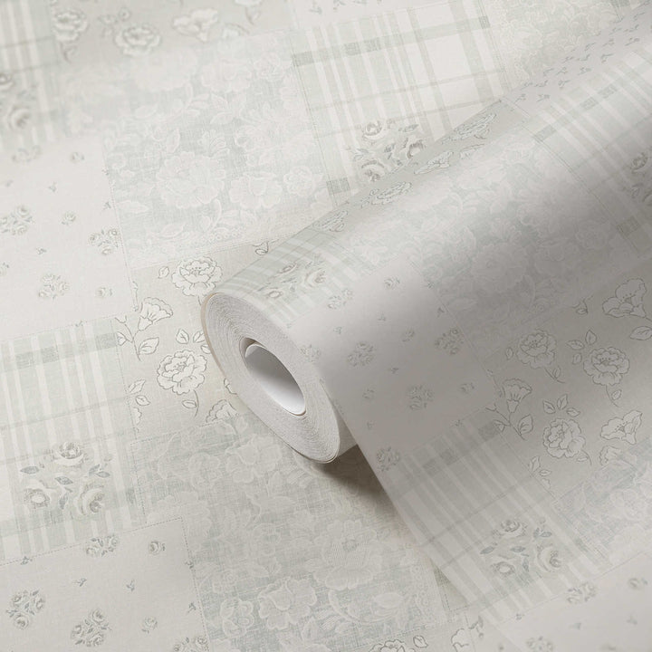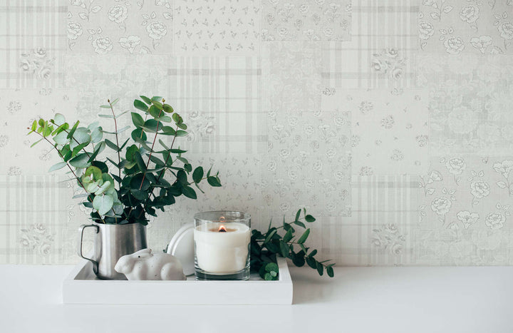 Kantrī stila tapetes ar ziedu rakstu: gaiši pelēkā krāsā - 1373006