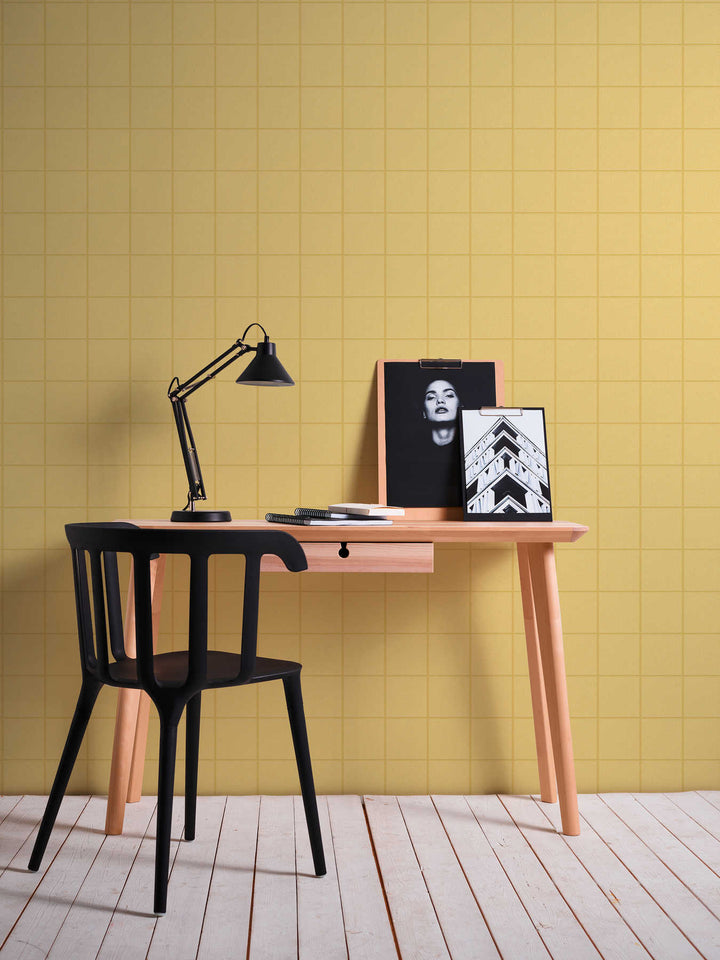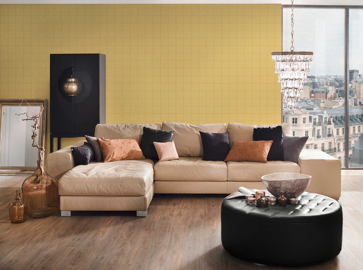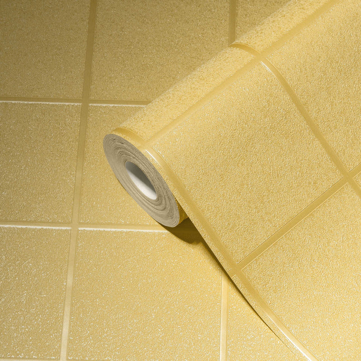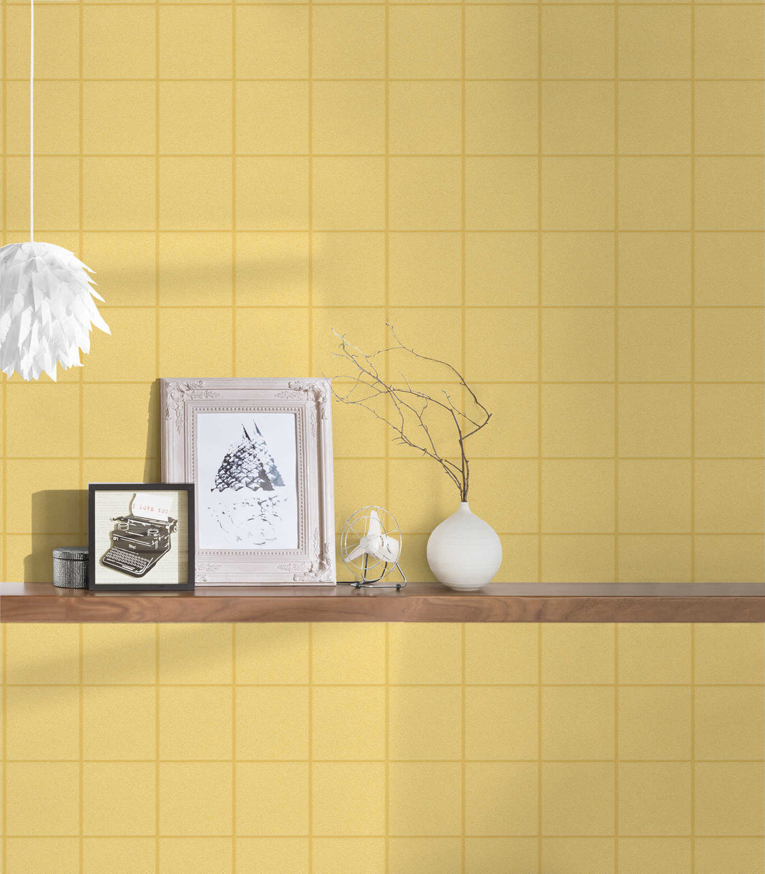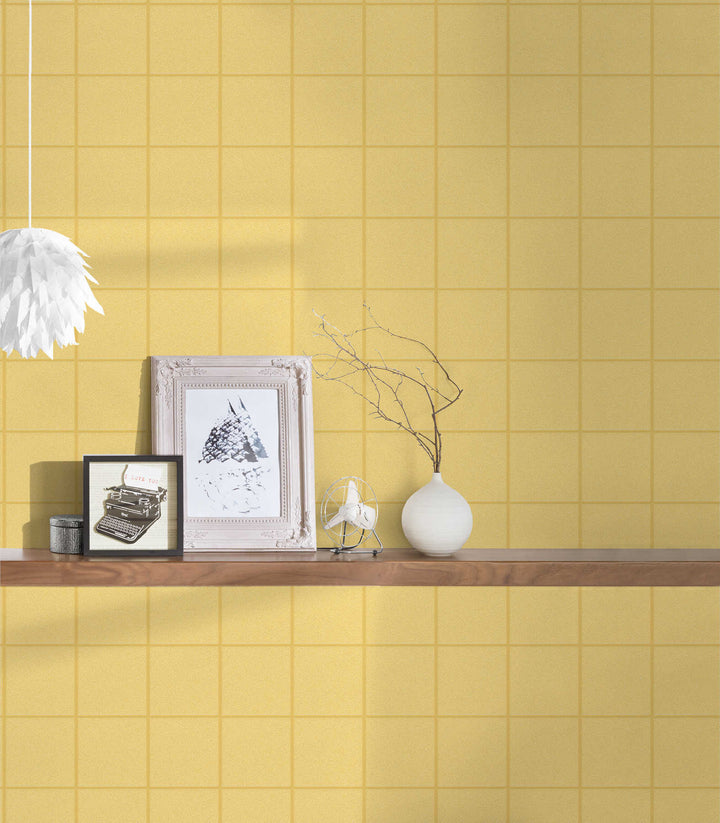 Tapetes ar flīžu rakstu un 3D efektu - dzeltenā krāsā, 1127046