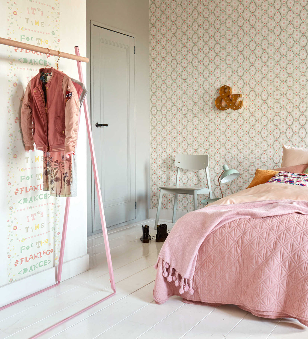 Tapetes ar uzrakstu: It's time For the Flamingo dance