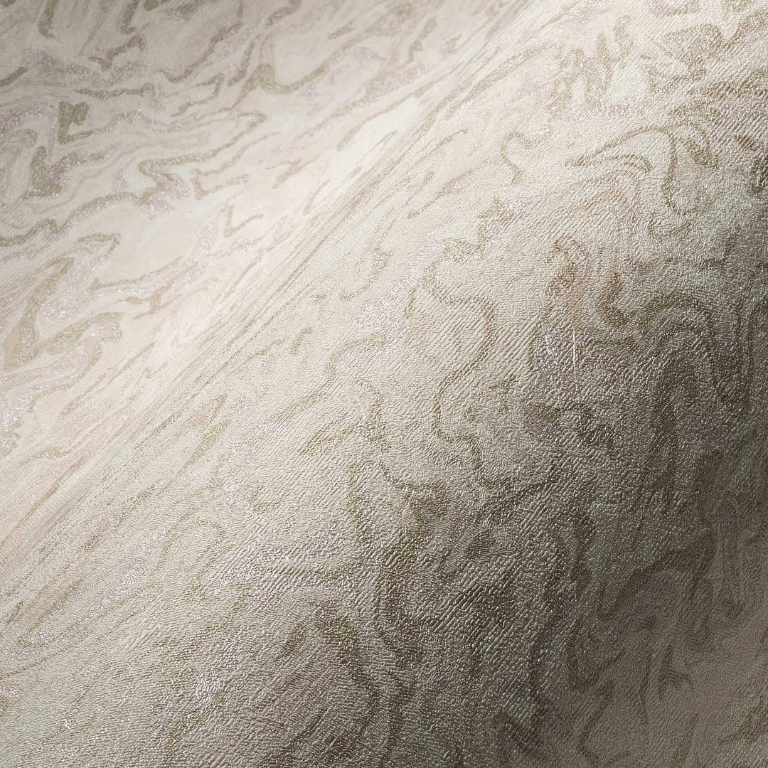 Šīs izsmalcinātās marmora efekta tapetes smilškrāsas toņos izstaro izsmalcinātību un eleganci. Tā virsma ar nelielu spīdumu un tekstūru rada smalku gaismas un ēnu saspēli, kas piešķir sienām dziļumu un raksturu.