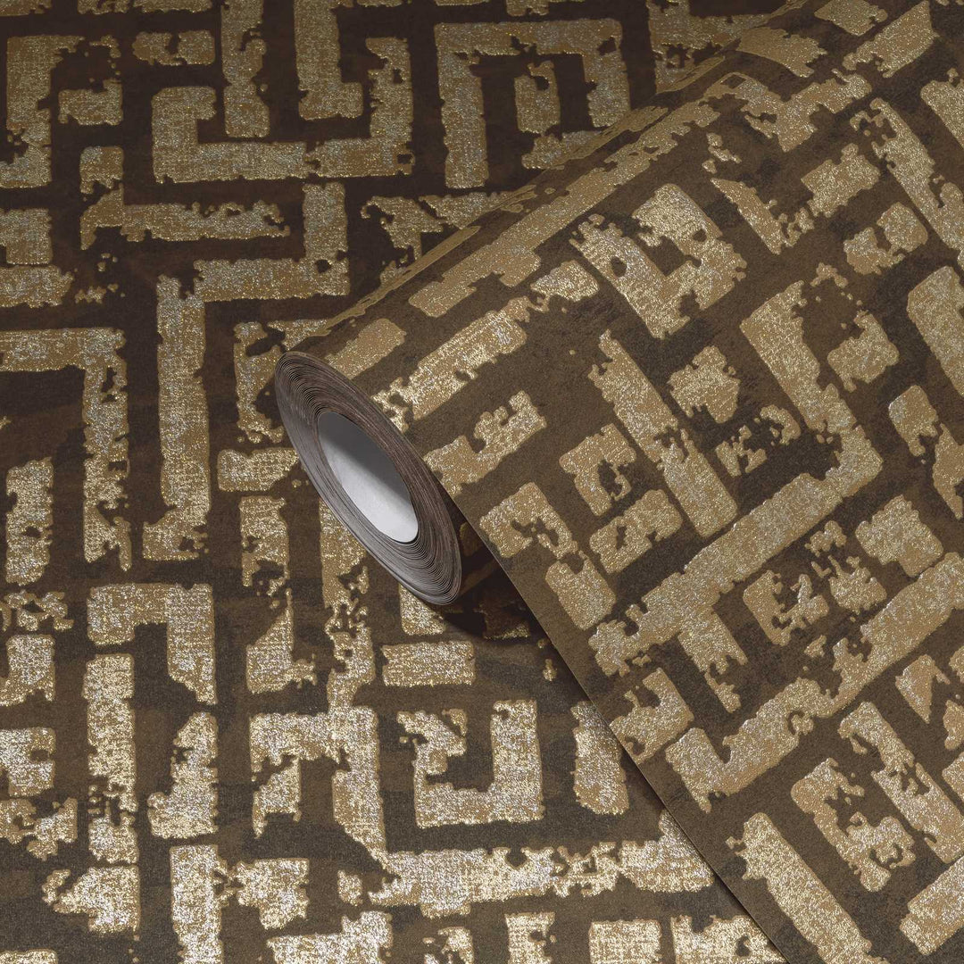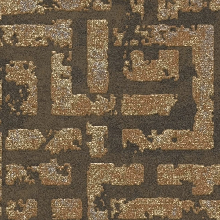 Grafiskas tapetes ar strukturētu virsmu brūnā un zeltā krāsā, 1363613