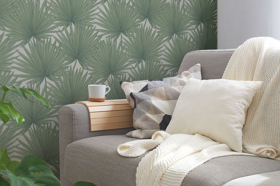 Džungļu stila tapetes - zaļa, balta, 1373365