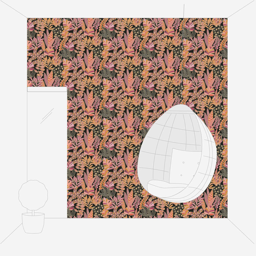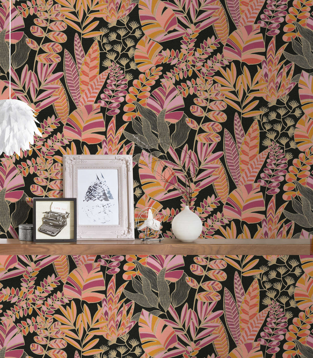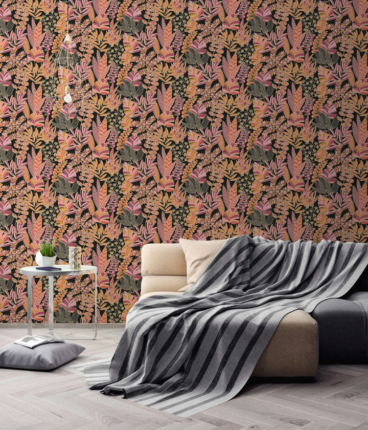 Tapetes ar lielām lapām uzkrītošās krāsās , 1373451