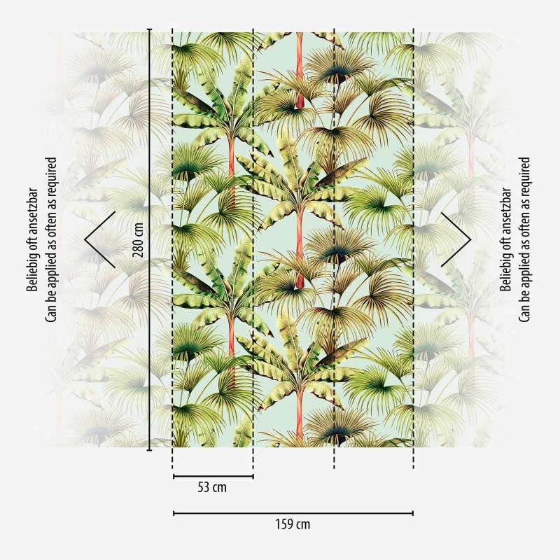 Krāsainas tapetes ar lapu rakstu un tropisku stilu, 1375227