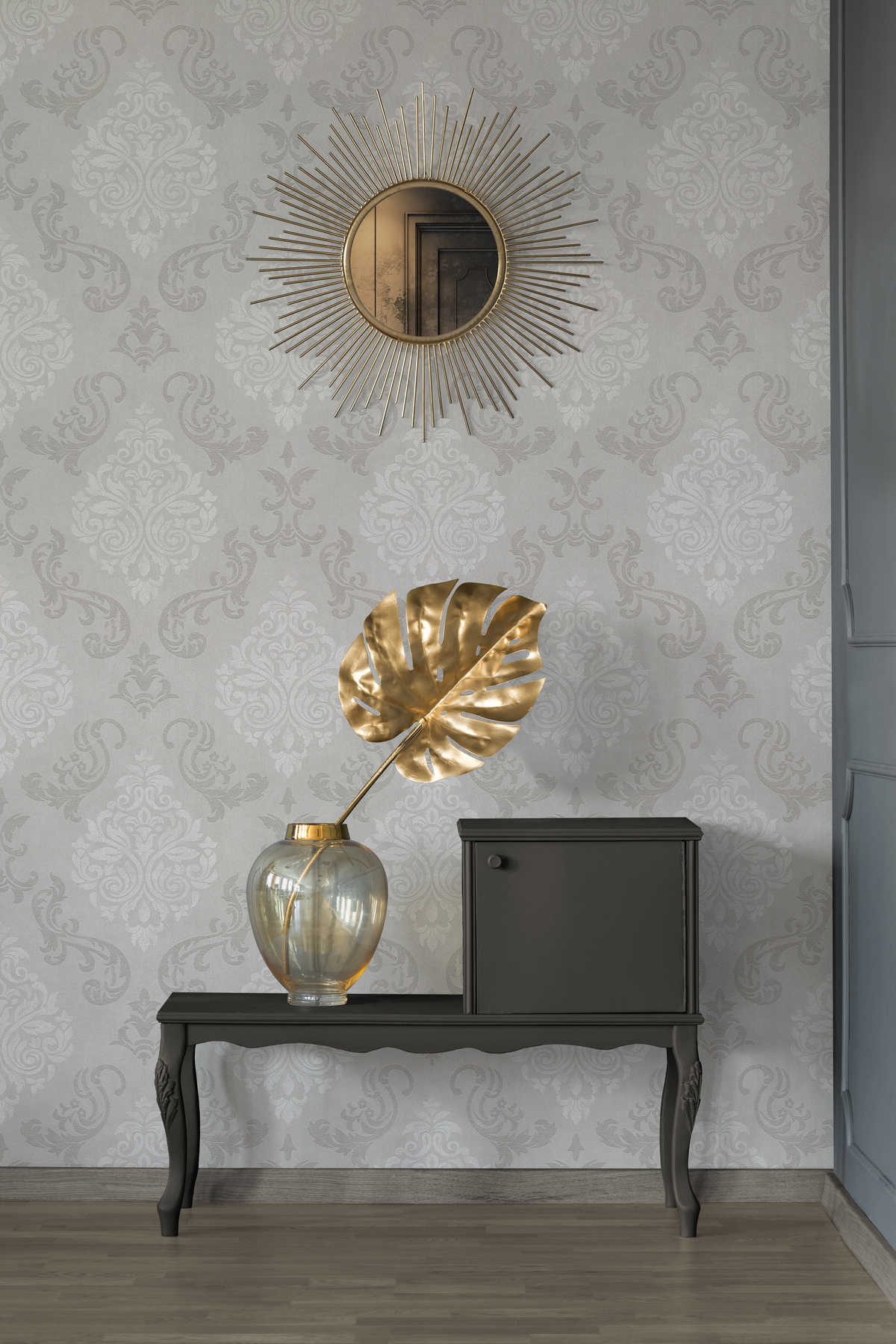 Tapetes baroka stilā ar mirdzuma efektu - gaiši bēša, krēmkrāsaina, 3506571