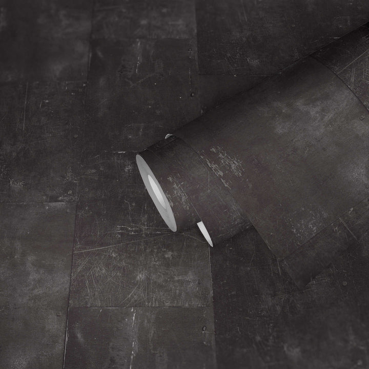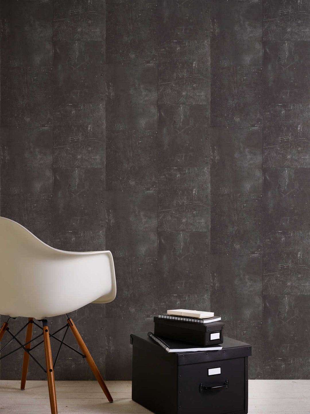 Tapetes ar metāla un dzelzs loksnes izskatu - melnā krāsā, 3527267