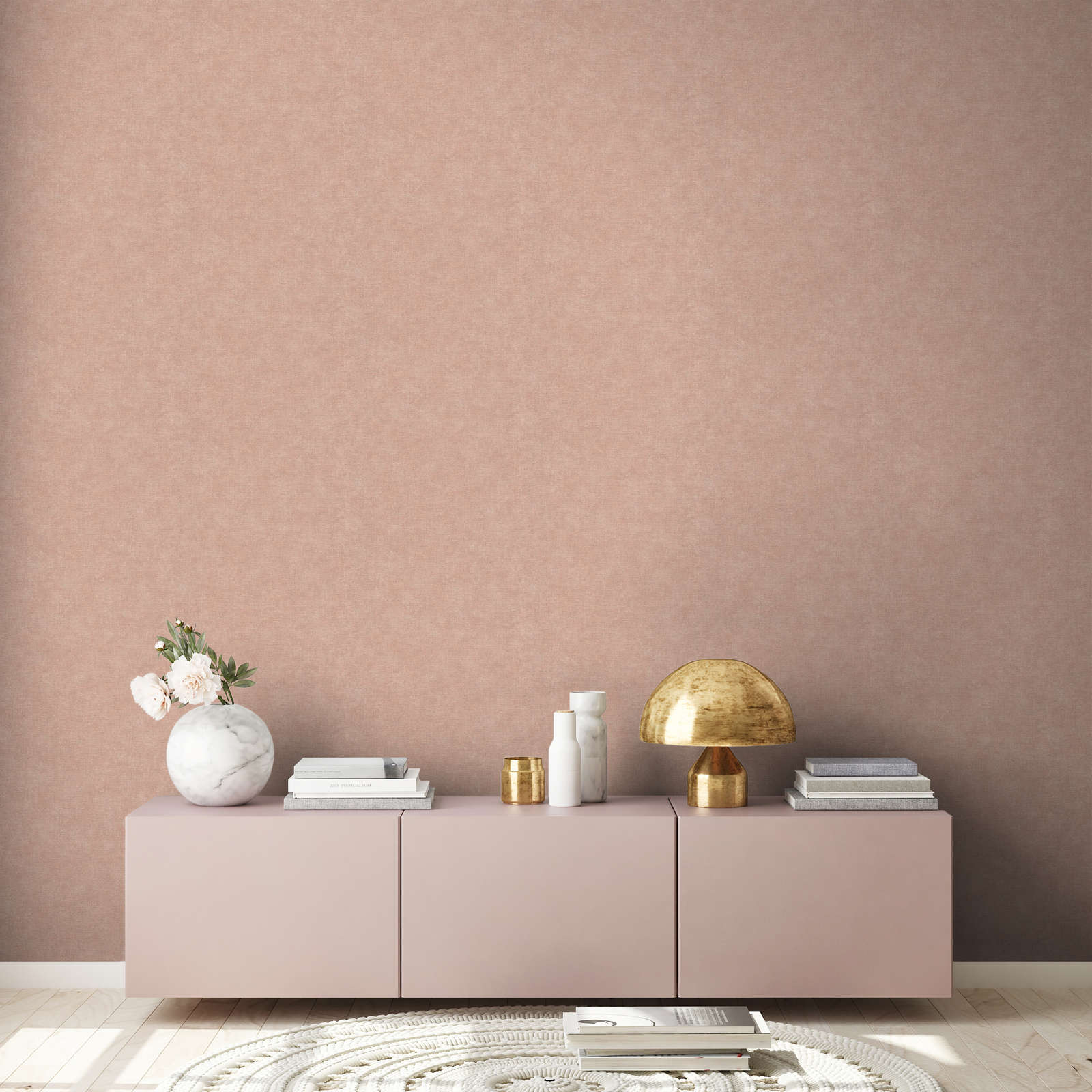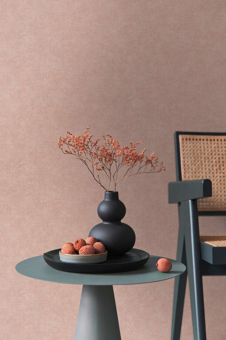 Vienkrāsainas tapetes ar tekstila izskatu rozā krāsā, 1404623