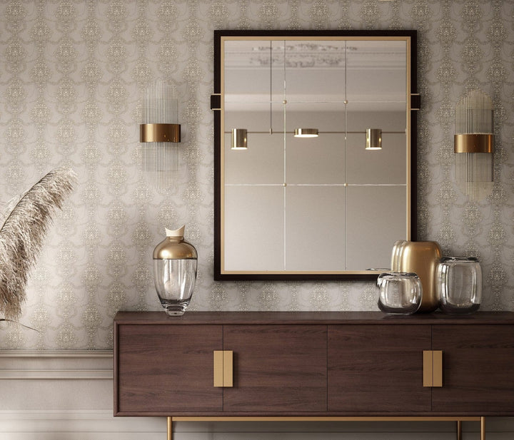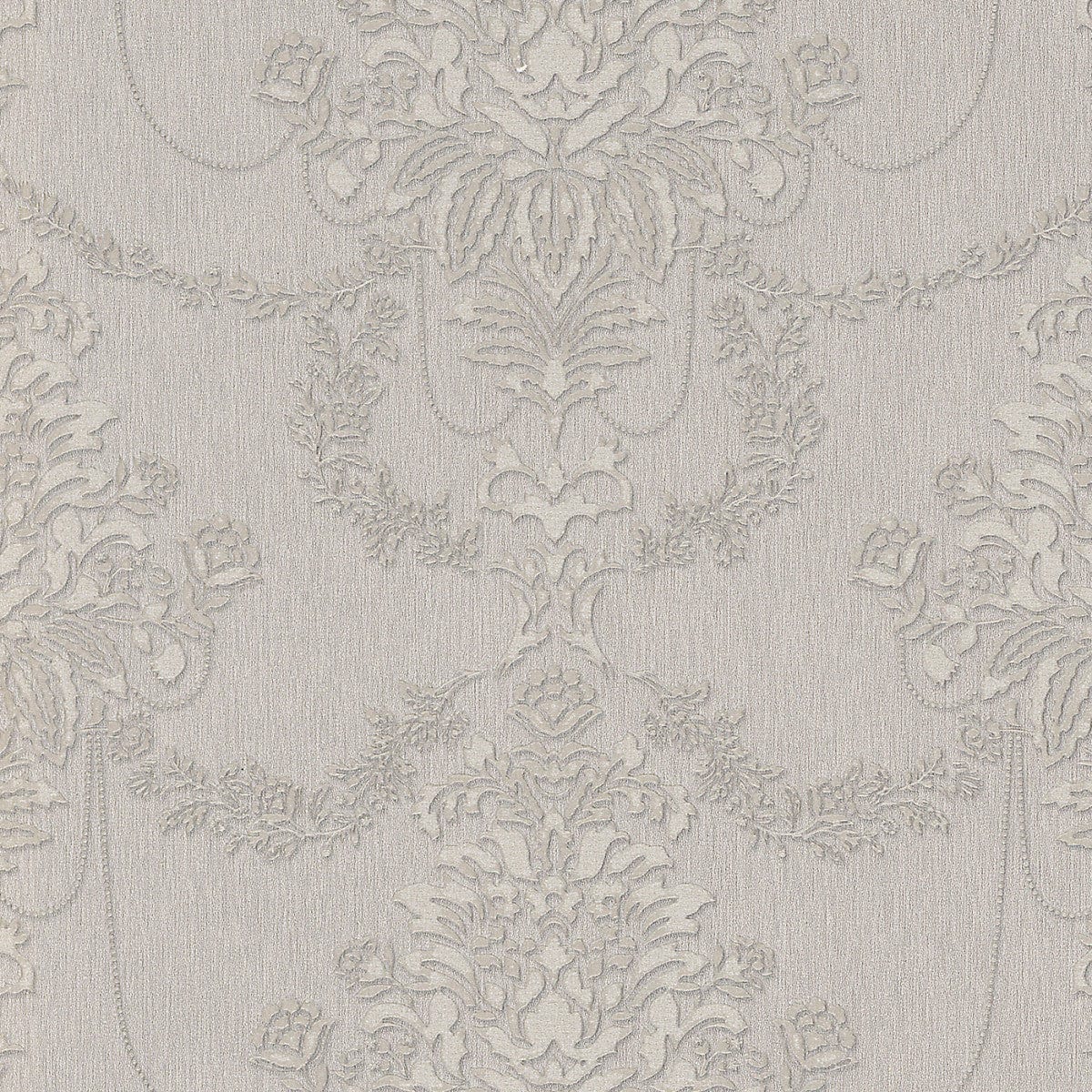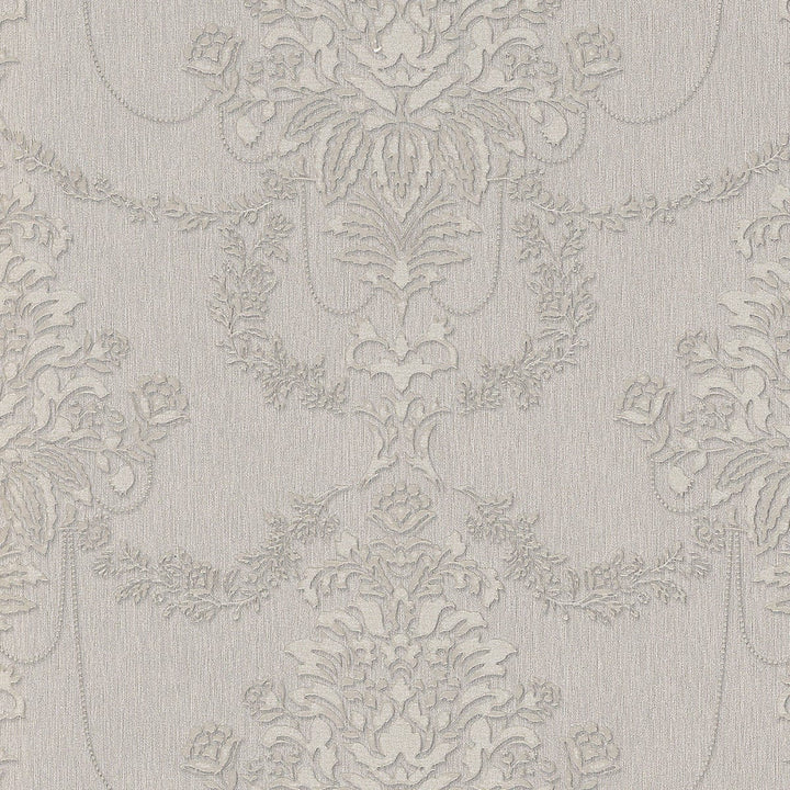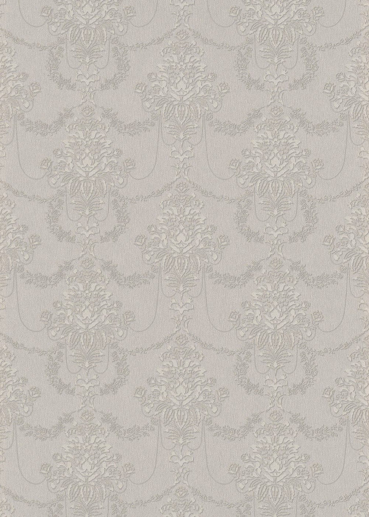 Tapetes ar filigrānu ziedu rakstu, taupe, perlamutra efekts, 3731201