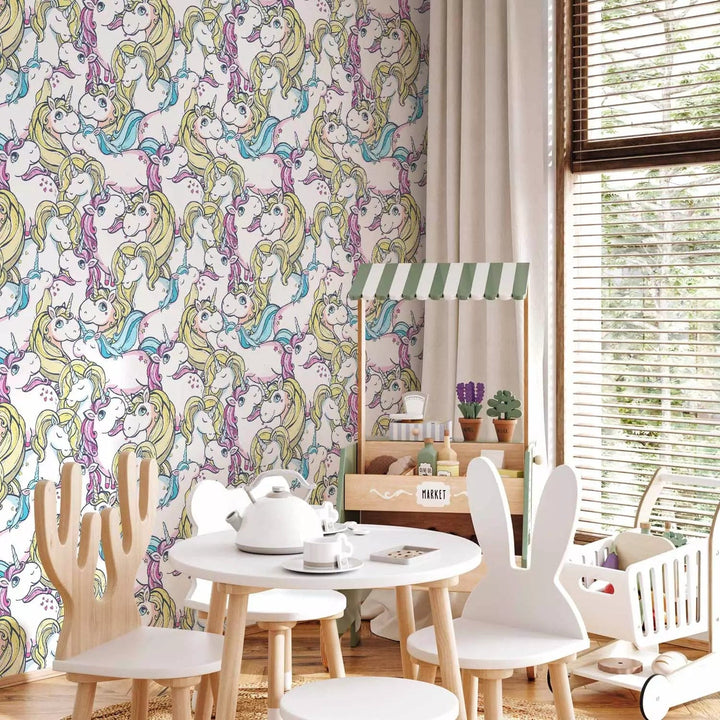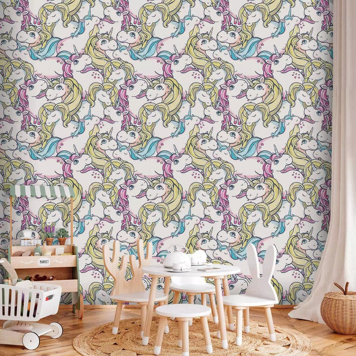 Modernās tapetes Tapetenshop galerijā ir pieejamas iegādāties ruļļos (0,5mx10m) Tapetes Herd of Unicorns ornamenta motīvs ļaus jums atšķirt vienu, konkrētu sienu no citām sienām jūsu interjerā. Šī izvēle palīdzēs jums izcelt izvēlēto telpu un izvairīties no vienmuļības.