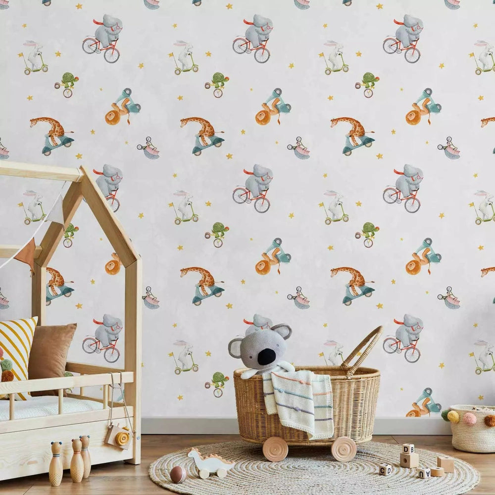Tapetes bērnu istabai - Dzīvnieku sacīkstes, daudzkrāsainas G ART
