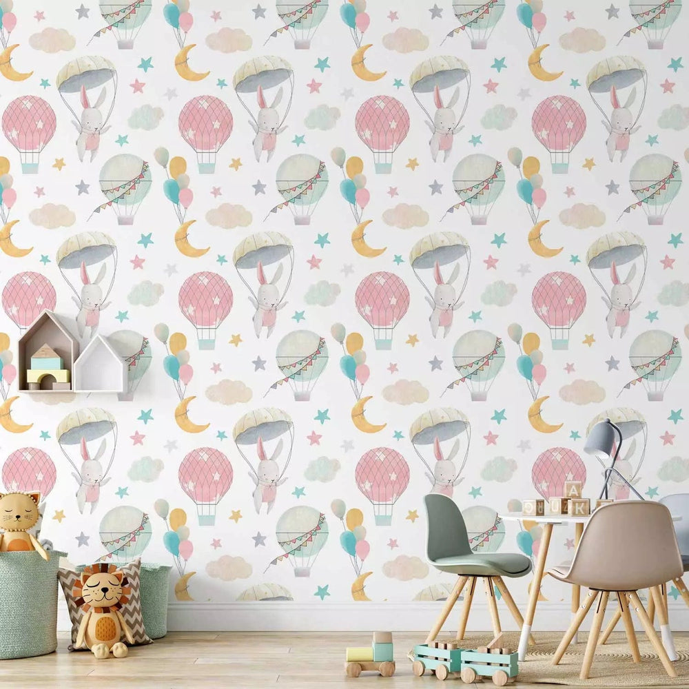 Tapetes bērnu istabai - Zaķis un gaisa baloni, 142735, (0,5x10m)