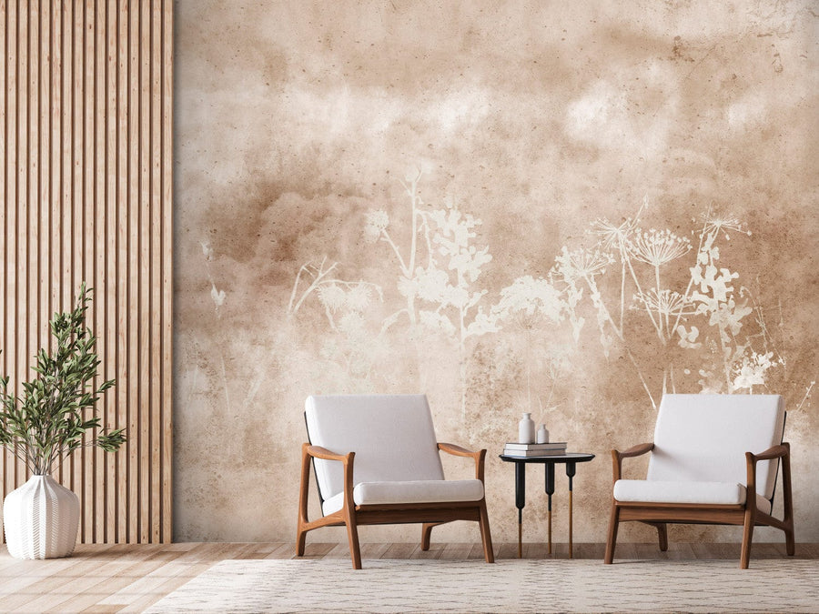 Fototapetes - Abstrakcija ar ziedu motīvu uz bēša fona, 138164