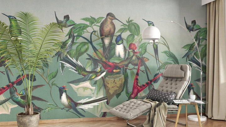 Fototapetes ar eksotiskiem putniem, zaļā krāsā, RASCH, 2045470, 318x300 cm