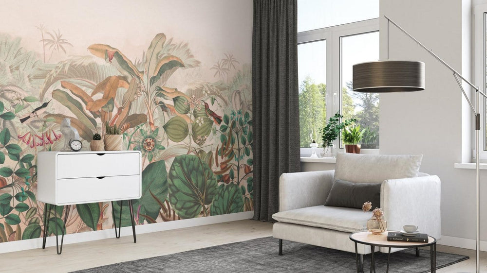 Fototapetes ar tropiskam lapām maigos toņos, RASCH, 543681, 318x300 cm RASCH
