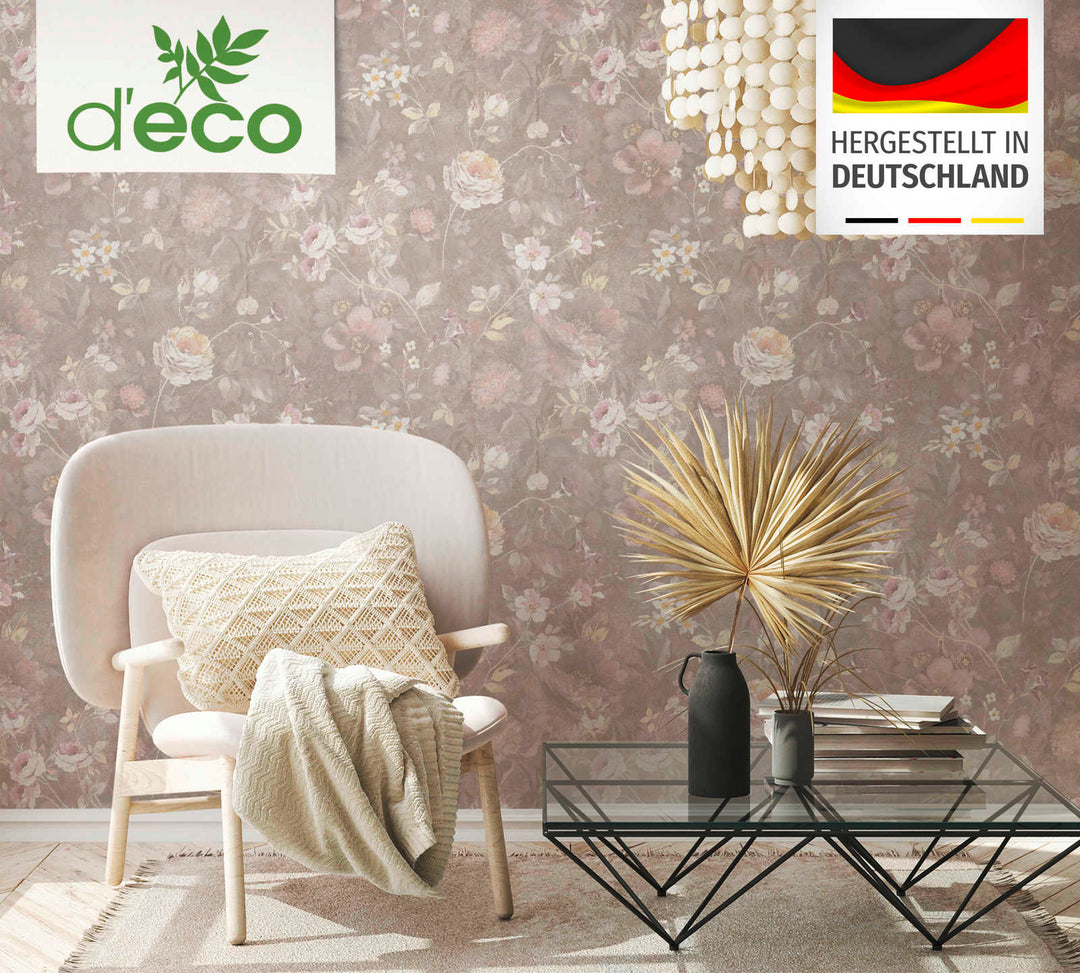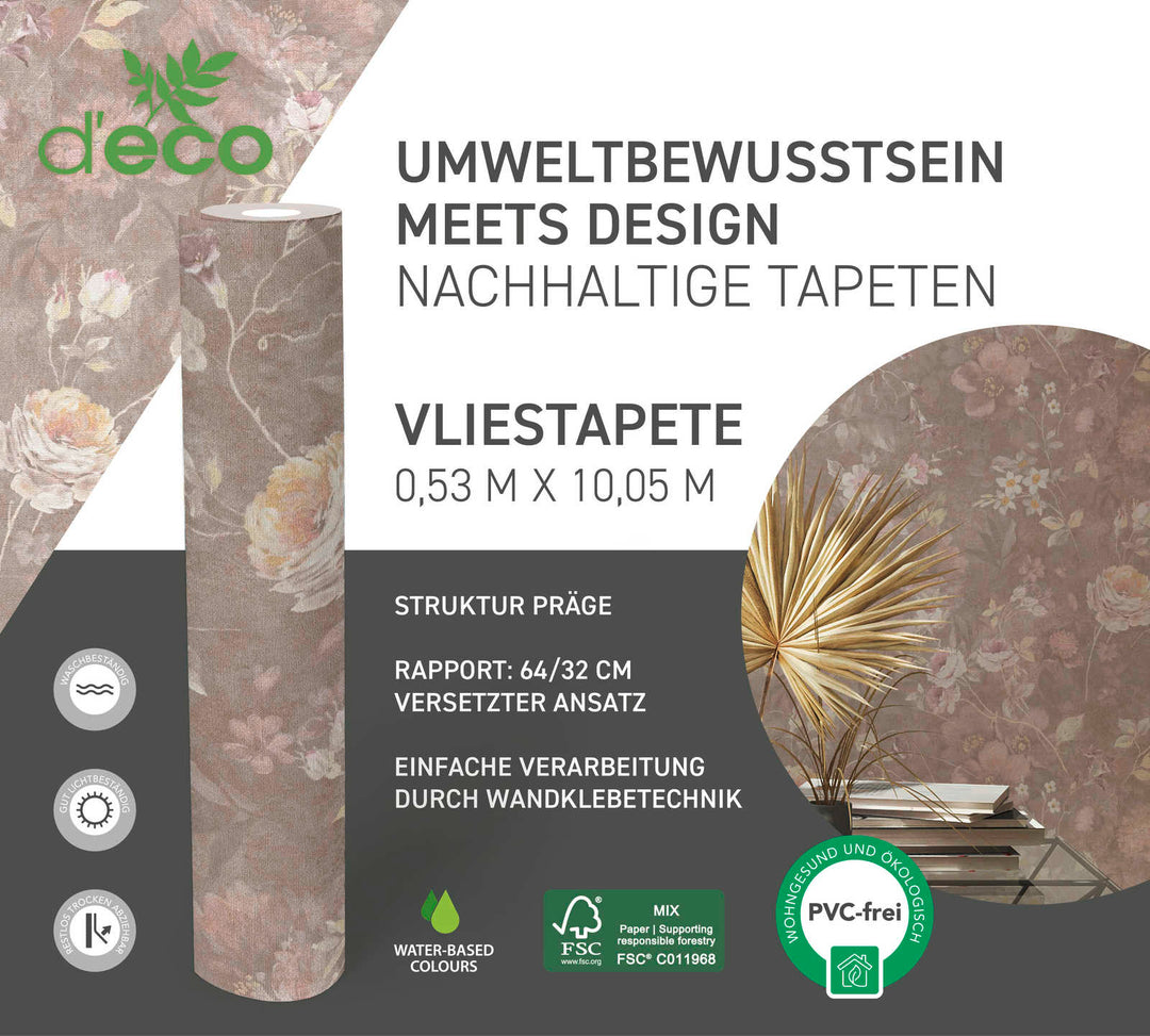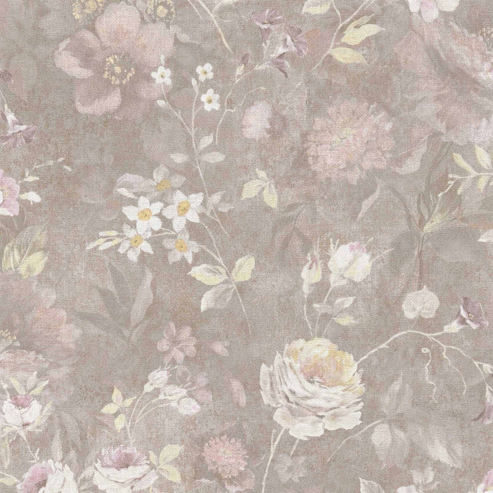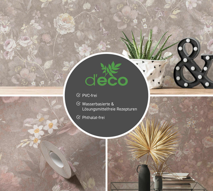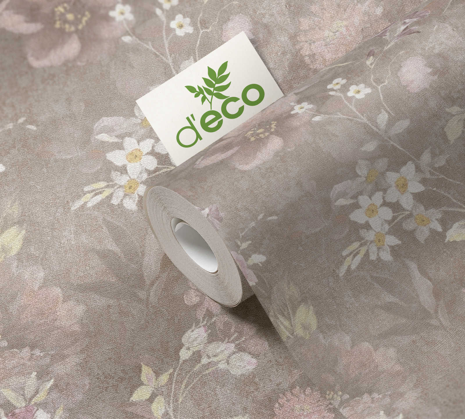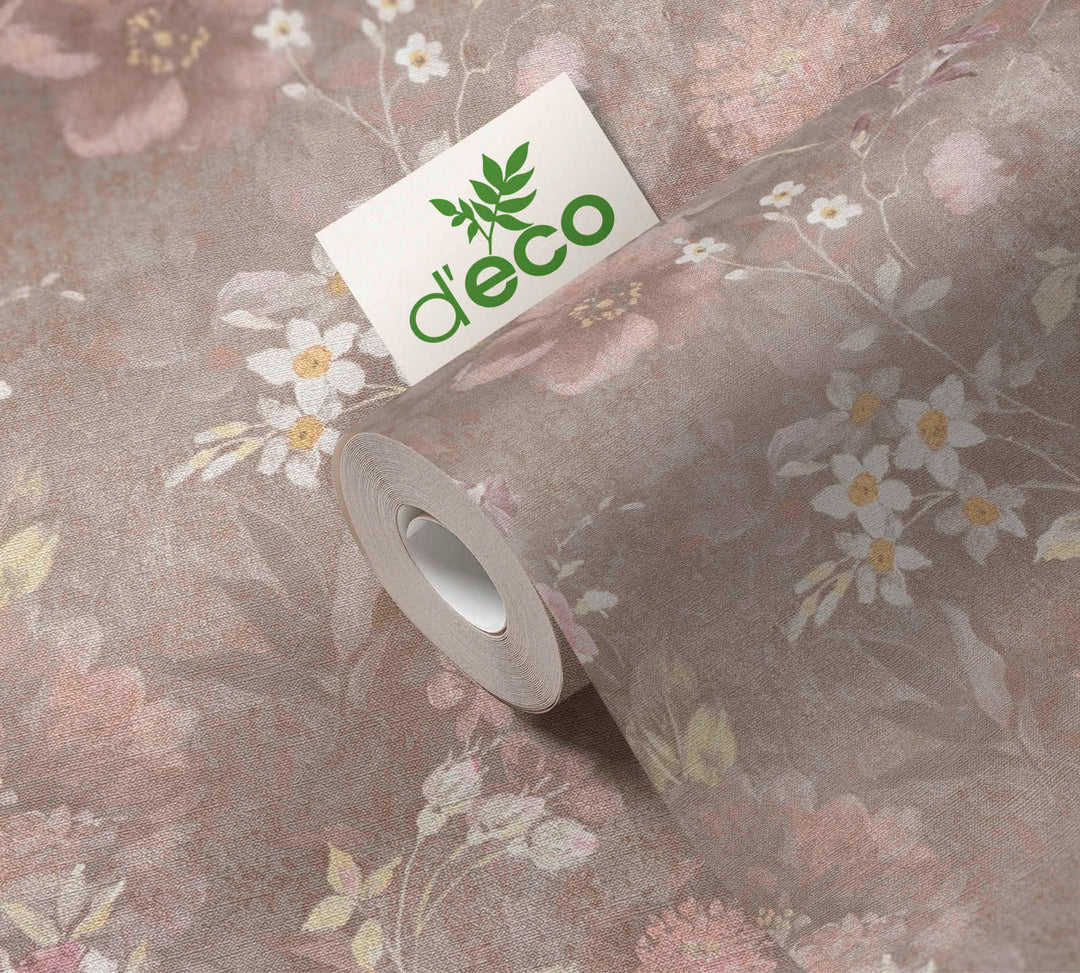 Ekoloģiskas tapetes ar ziedu rakstu: gaiši brūnā krāsā, 1362473, 🔖