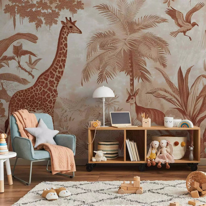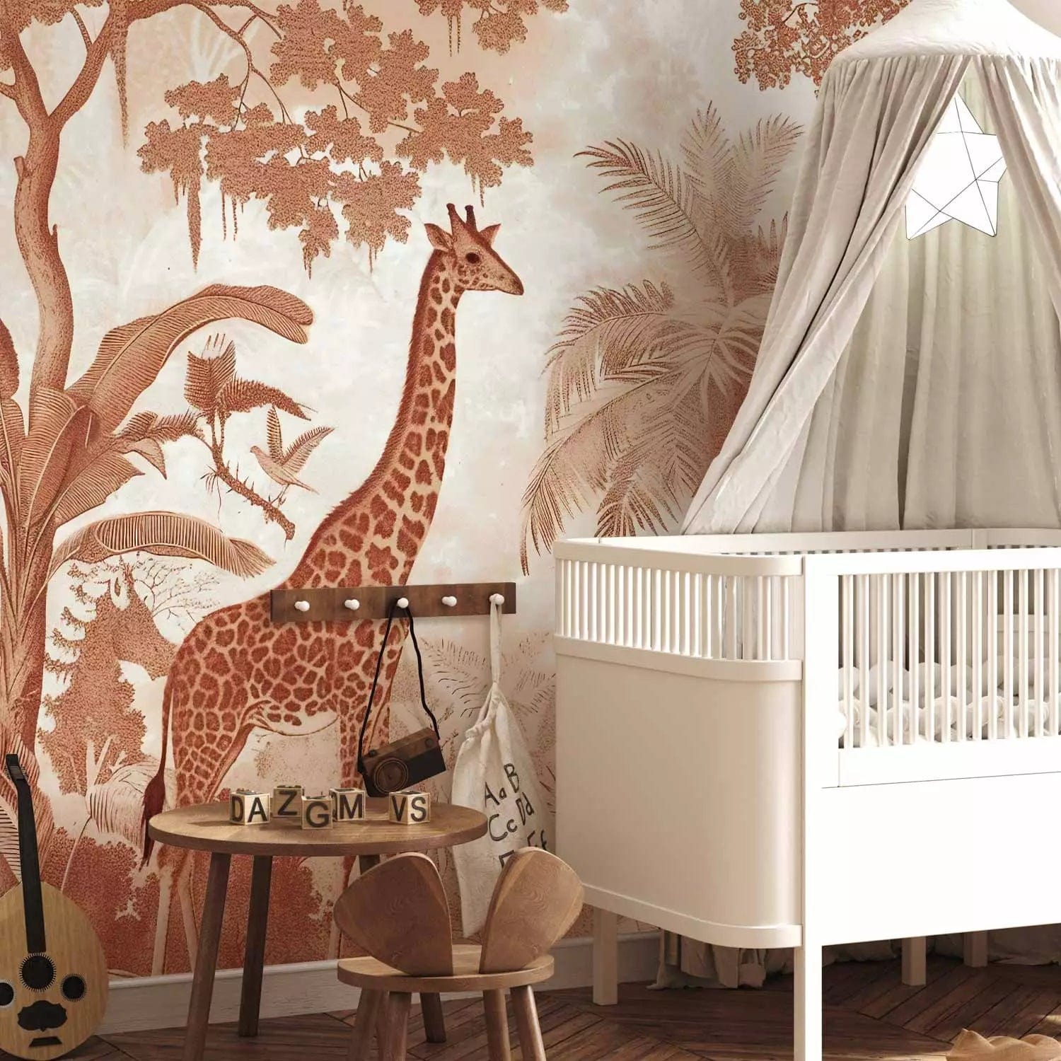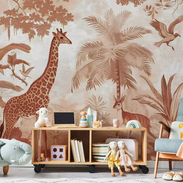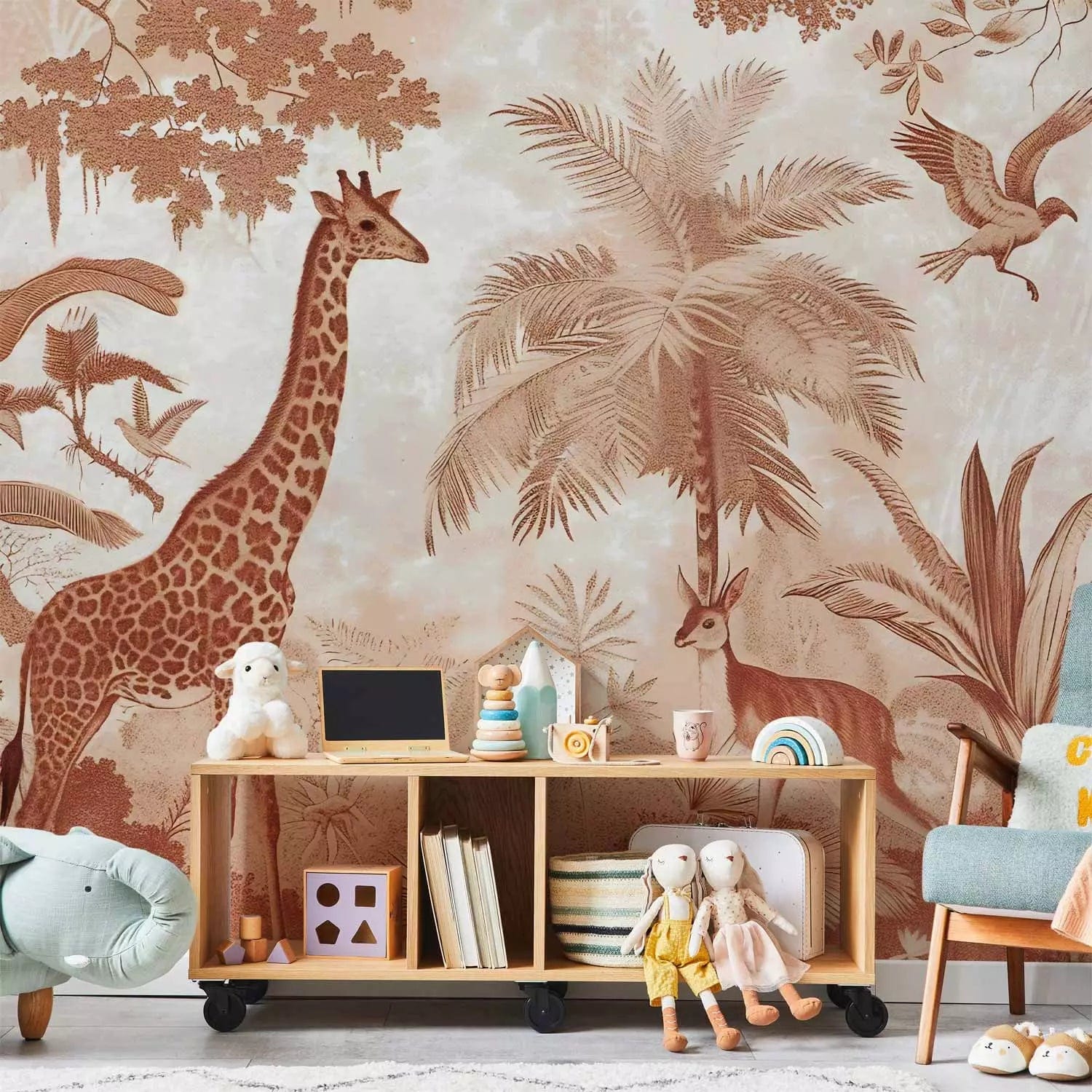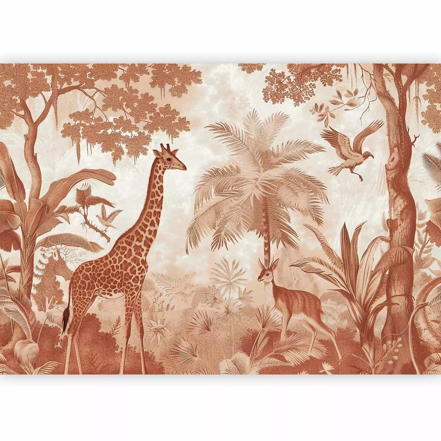 Fototapetes - Mežs un dzīvnieki - kompozīcija ar džungļiem terakotas krāsā, 160007