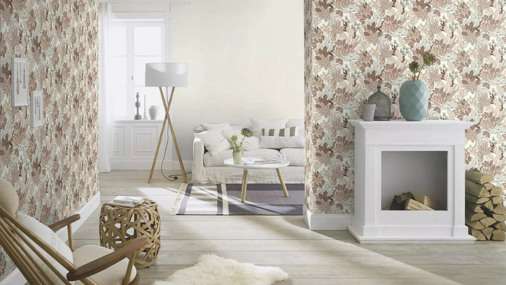 Tapetes RASCH lauku stilā ar dekoratīvām lapām, 866223 RASCH