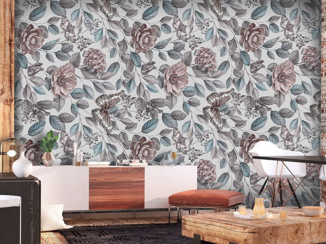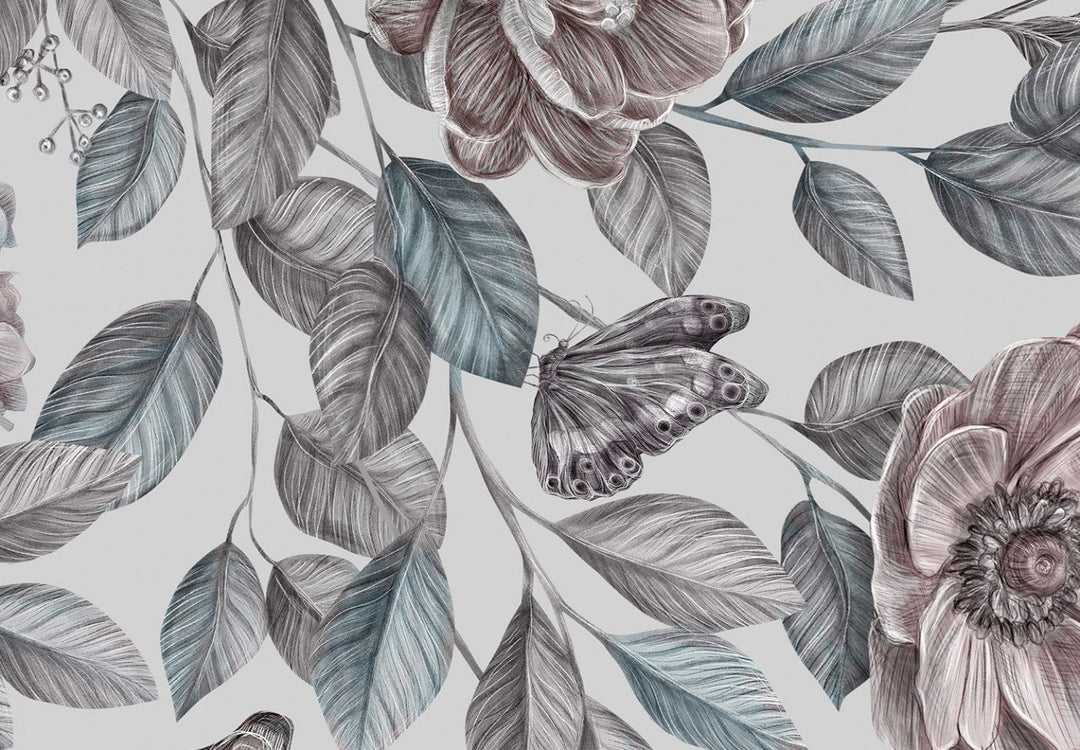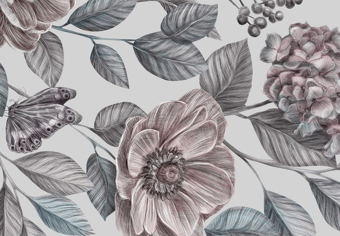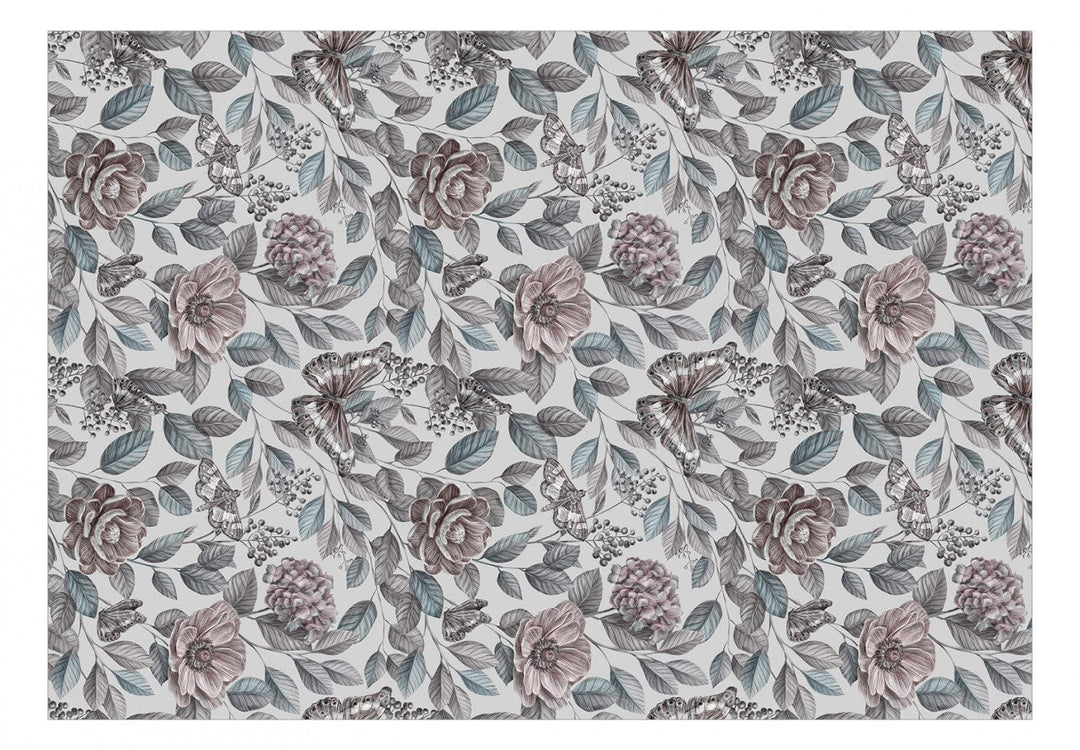 Fototapetes - Ziedu dārzs ar tauriņiem - elegants ziedu raksts, 137851