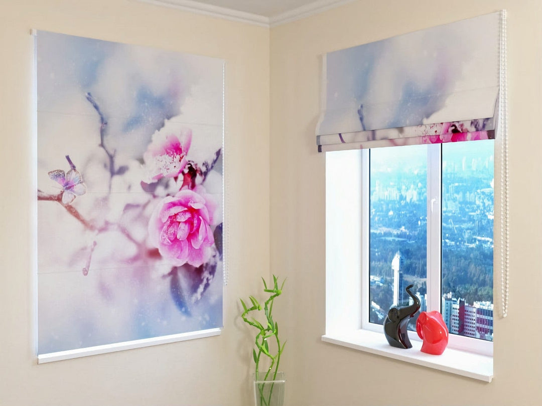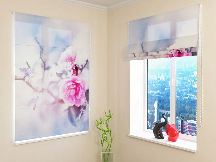 Žalūzijas - Rozes un tauriņš sniegā