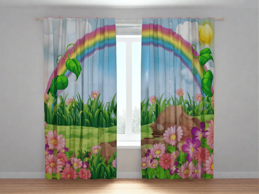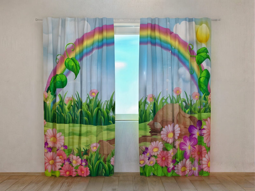 Aizkari bērnu istabai - Varavīksne virs pļavas - pasūtīt pēc izmēra Tapetenshop.lv