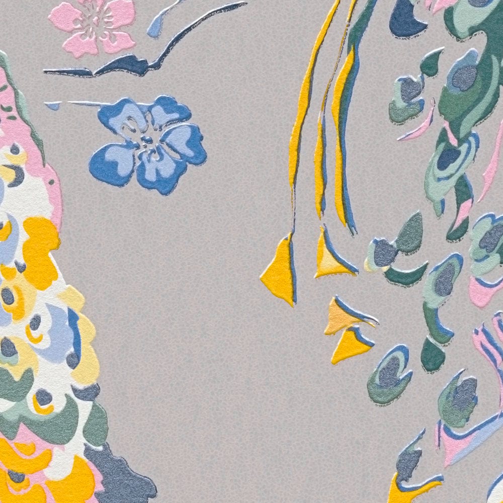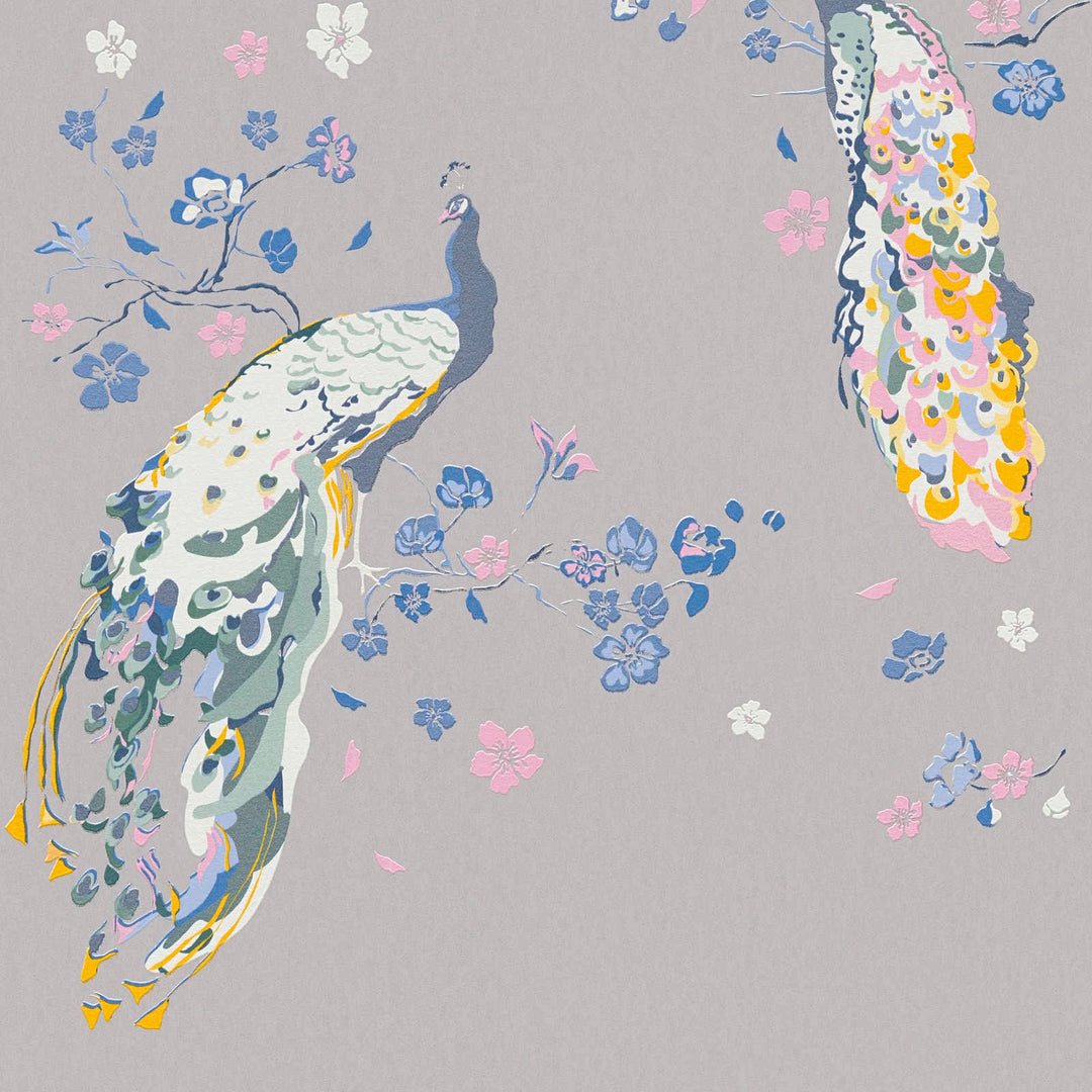Tapetes ar pāviem, strukturētas un ar nelielu spīdumu, pelēkā, 1367711