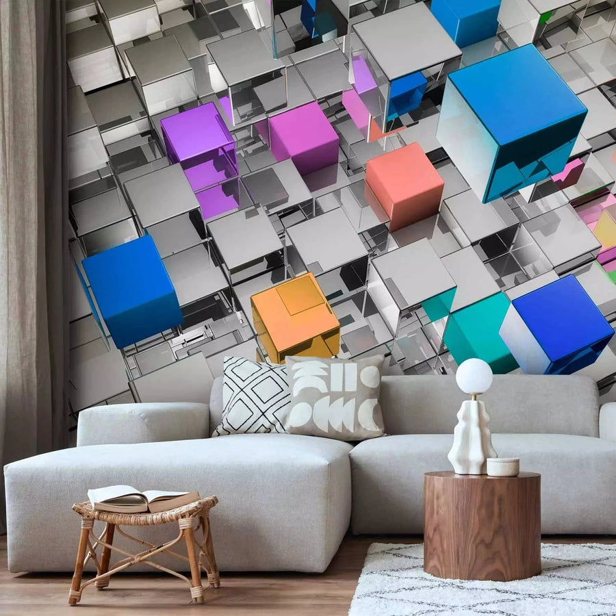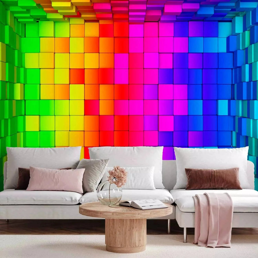 Fototapetes ar 3D optisku ilūziju - Varavīksnes kubs, 88775 Tapetenshop.lv