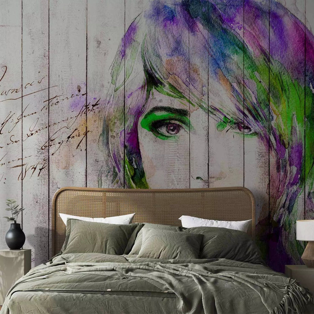 Fototapetes ar sievietes attēlu zaļā un violetā krāsā - 64532  G-ART