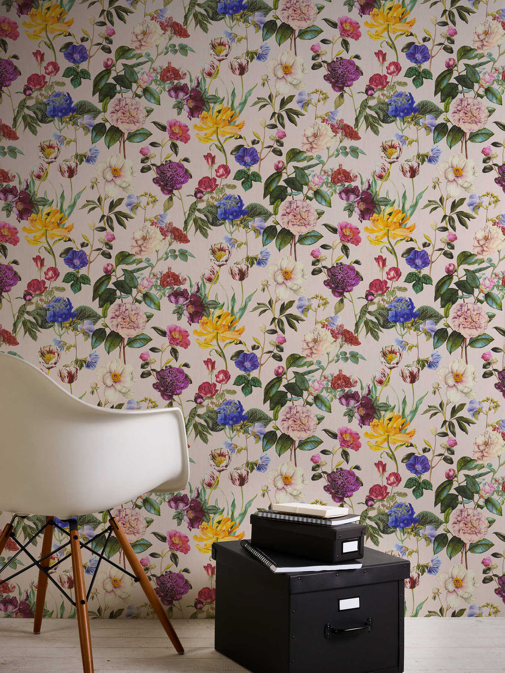 Daudzkrāsainas tapetes ar detalizētu ziedu rakstu, 1367623