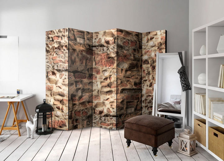 Telpas sadalītājs ar vecu sarkano ķieģeļu sienu.