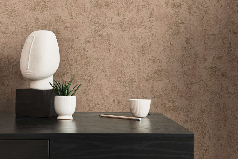 Flizelīna tapetes - apmetums ar zelta akcentiem - taupe, 393873 AS Creation