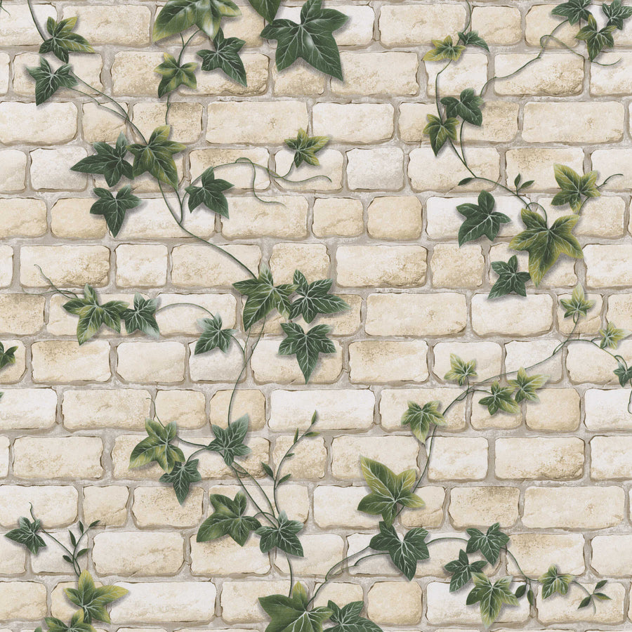 Papīra tapetes ar akmens sienu un efejas rakstu, 3572722