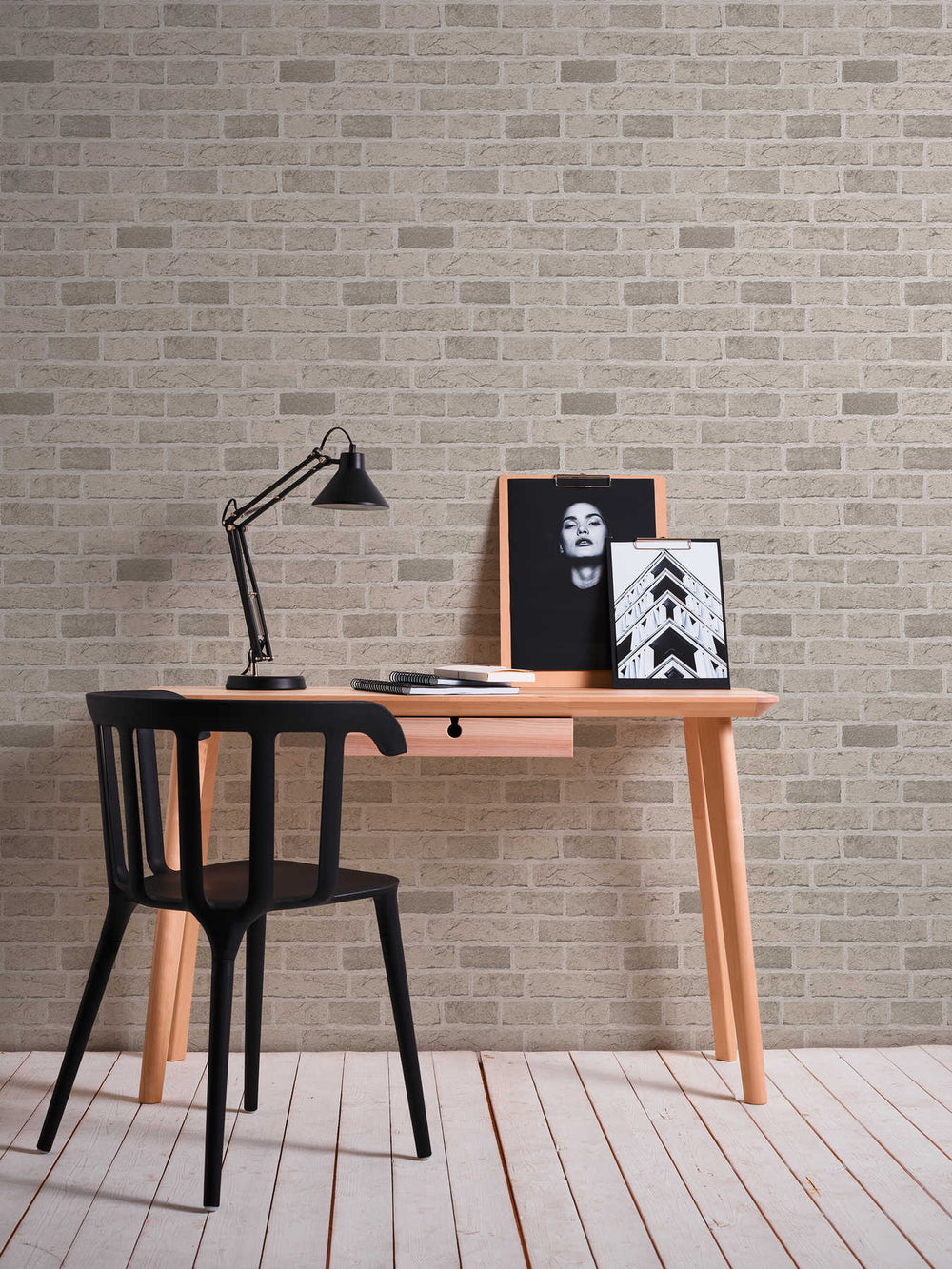 Tapetes ar ķieģeļu sienas rakstu bēšos toņos, 2763066