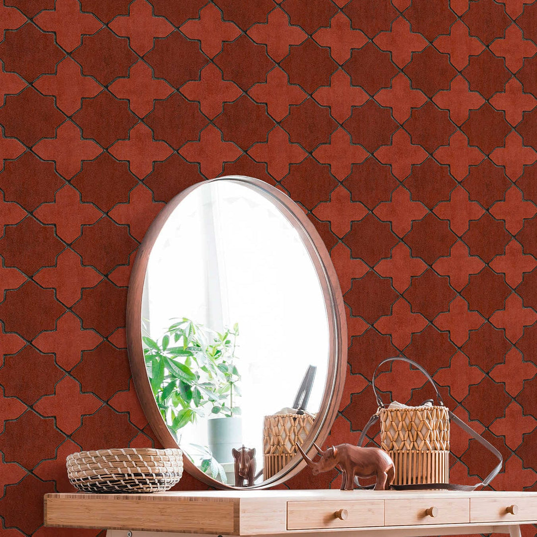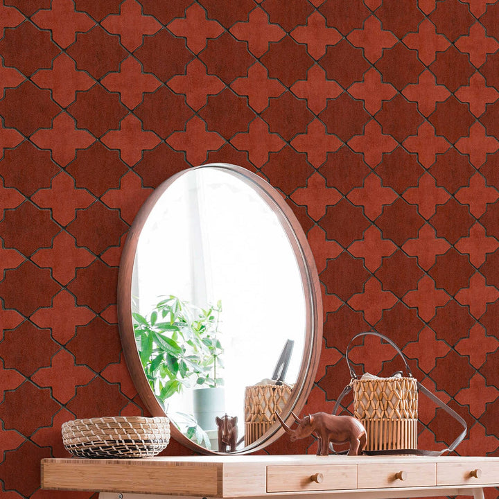 Tapetes ar marokas stila ornamentu sarkanā krāsā, 1332703