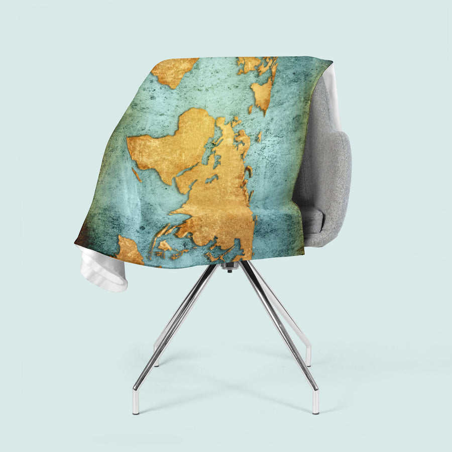 Flīsa pleds - Pasaules karte (zelta)