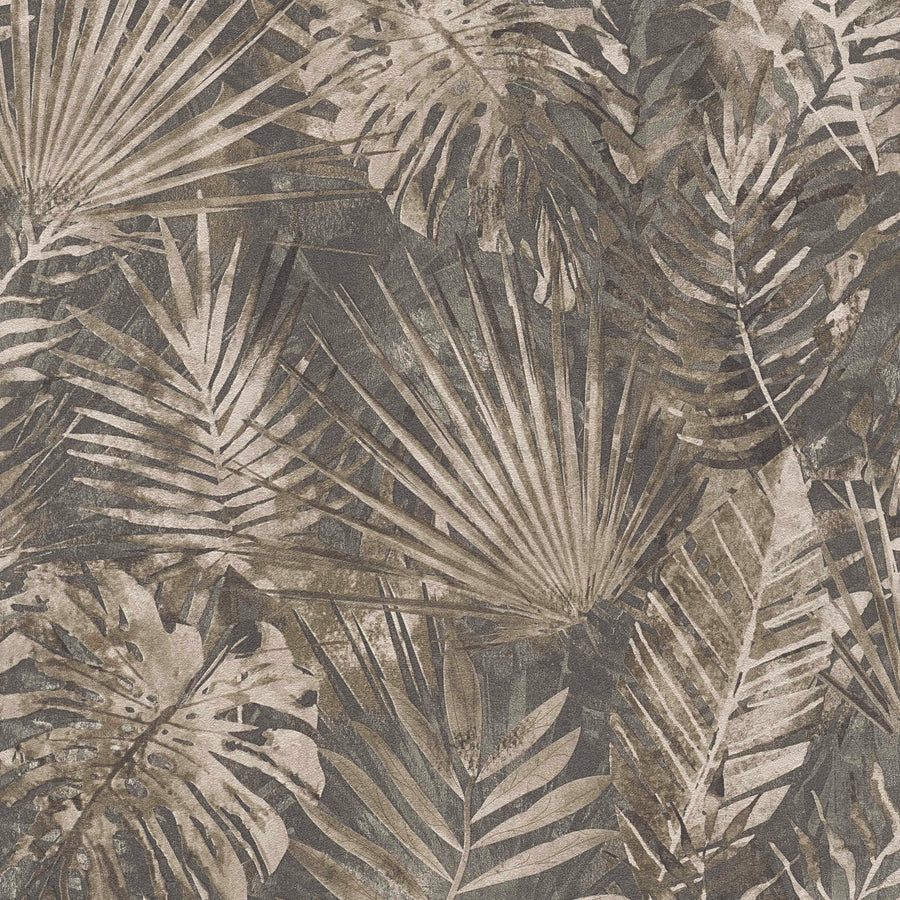 Tapetes ar palmu lapām un ziemcietēm abstraktā rakstā 377082 pelēkas AS Creation