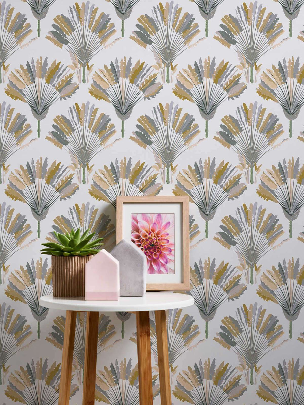 Tapetes ar palmam modernā stilā - dzeltena, pelēka, balta AS 377084 AS Creation