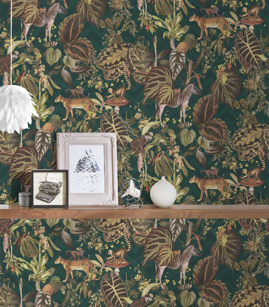 Tapetes ar eksotiskiem putniem un dzīvniekiem, zaļā krāsā 1345776